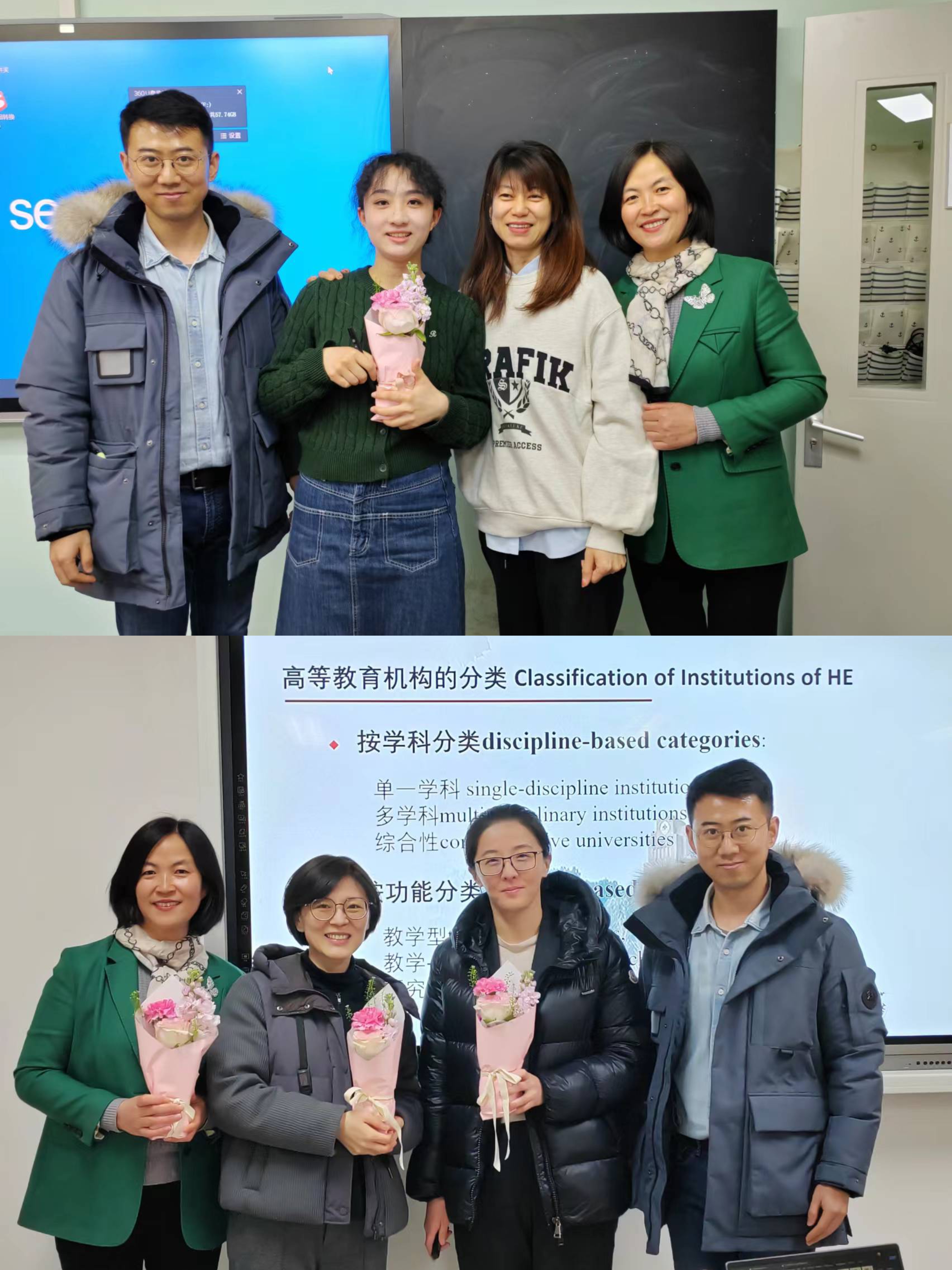 beat365英国官网院长马晓乐和学院领导班子代表、学院工会负责人、教学系部负责人及师生代表走访慰问了一线上课的老师并送上美丽的花束,向辛勤的园丁们致以崇高的敬意。