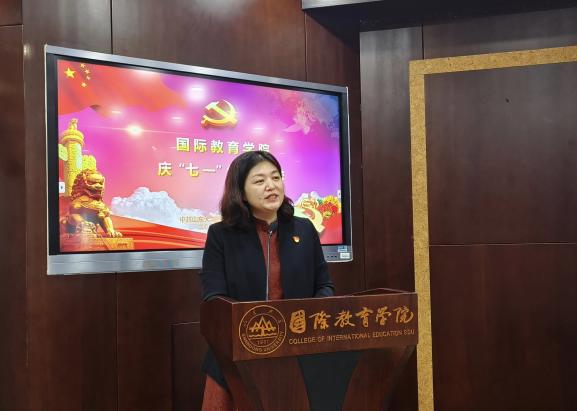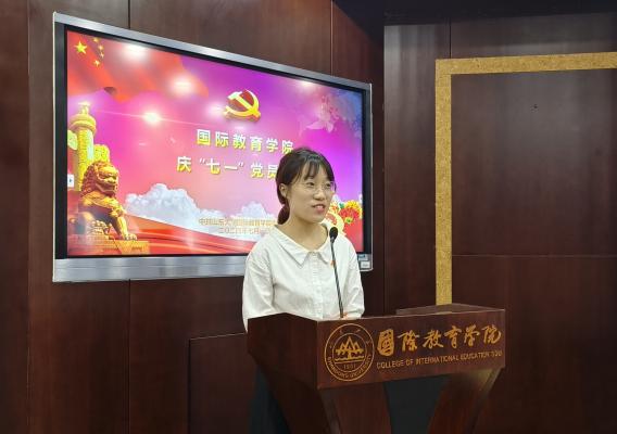 教师和学生党员代表分别发言。教师党员代表刘冰冰同志通过回顾自身成长的心路历程,深入理解共产党人的崇高追求和使命担当,也由衷表达了作为国际中文教育者“任务不可谓不艰、责任不可谓不大”的时代担当;毕业生党员代表黄欣如同志汇报了学生样板党支部的建设与党员成长发展,并做出在未来继续和学校学院的发展同频共振,担当新时代青年的使命,展现山大国教人风采的誓言承诺。