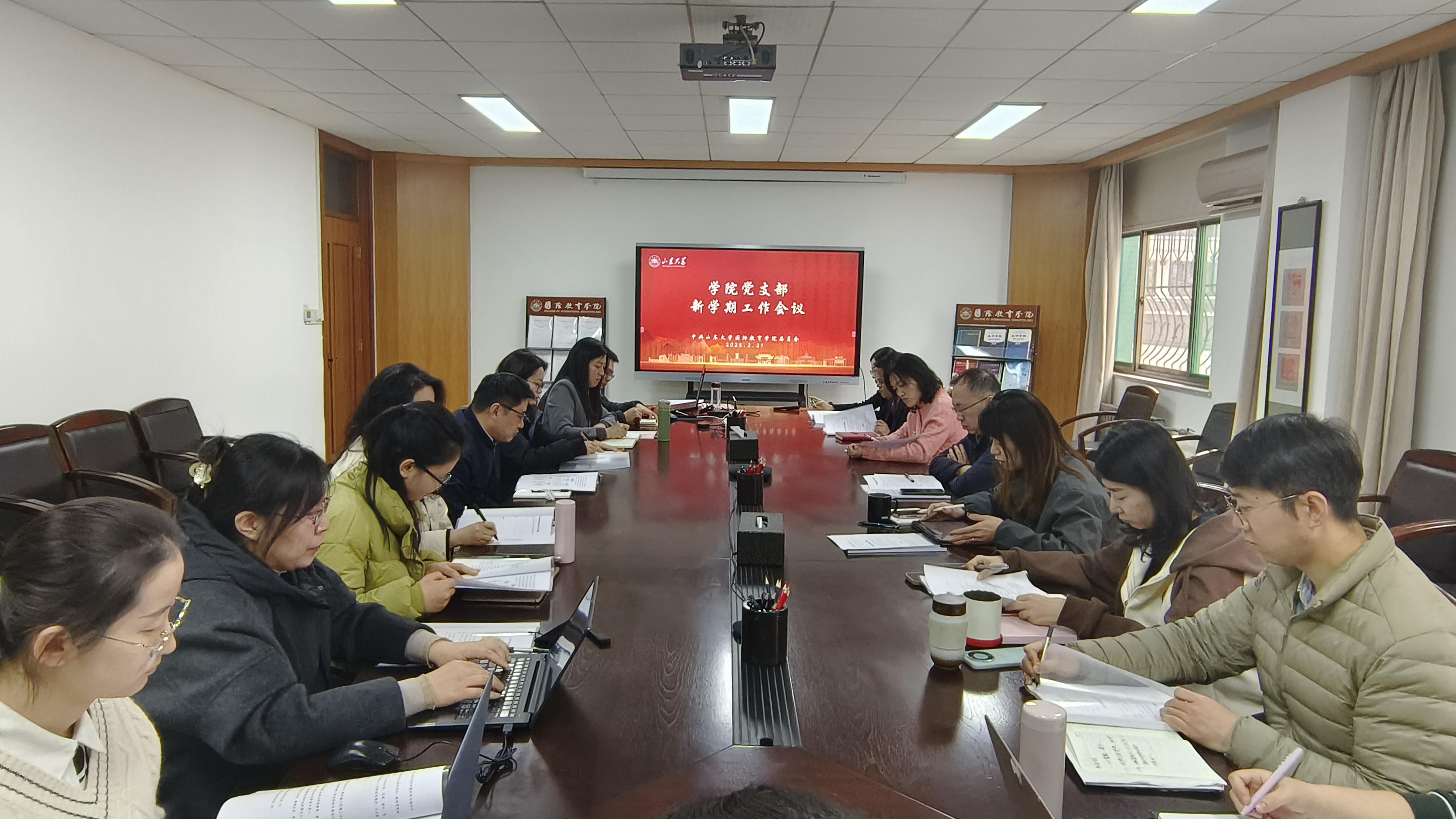 为深入学习贯彻学校春季学期工作会议精神,2月21日下午,学院党委召开2025年新学期基层党支部党建工作会议,谋划部署学院2025年基层党建工作。本次会议也是组织新一届教工党支部委员会召开的第一次工作会议。学院党委书记姬锐主持会议。党委副书记王璐璐,专职组织员王勤及各师生党支部书记、委员参加会议。