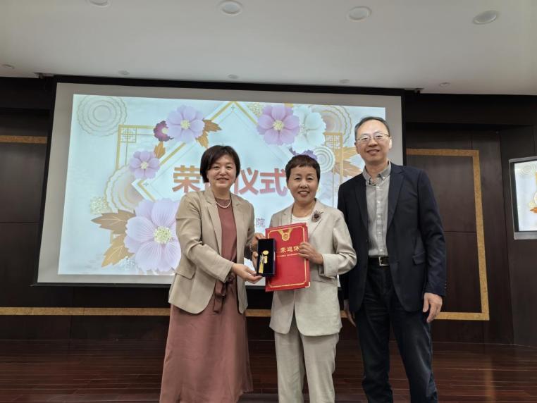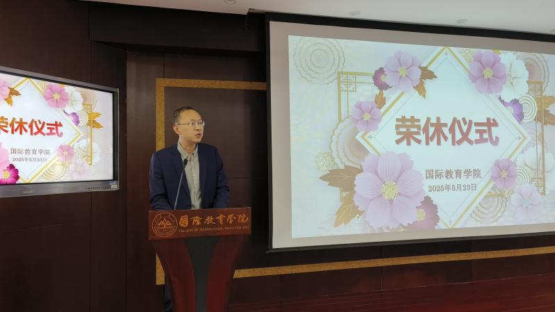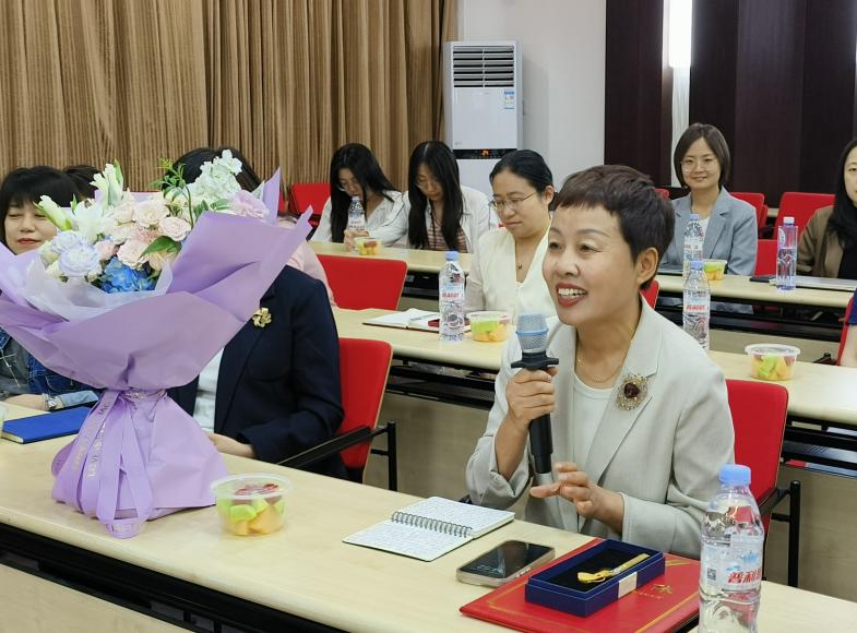 王尧美代表退休教师发表荣休感言,深情分享了从教四十年来与学院共同成长的珍贵回忆,不管是组建预科教学团队,还是教材编写等工作,都体会到强大的归属感,荣誉感和获得感。她表示,看到近几年学院的跃升发展,对学院的未来充满期待,并再次向学院领导班子、同事们表达了由衷地感谢。