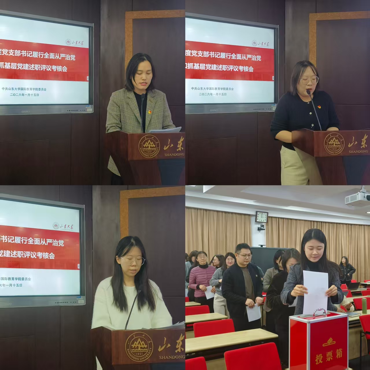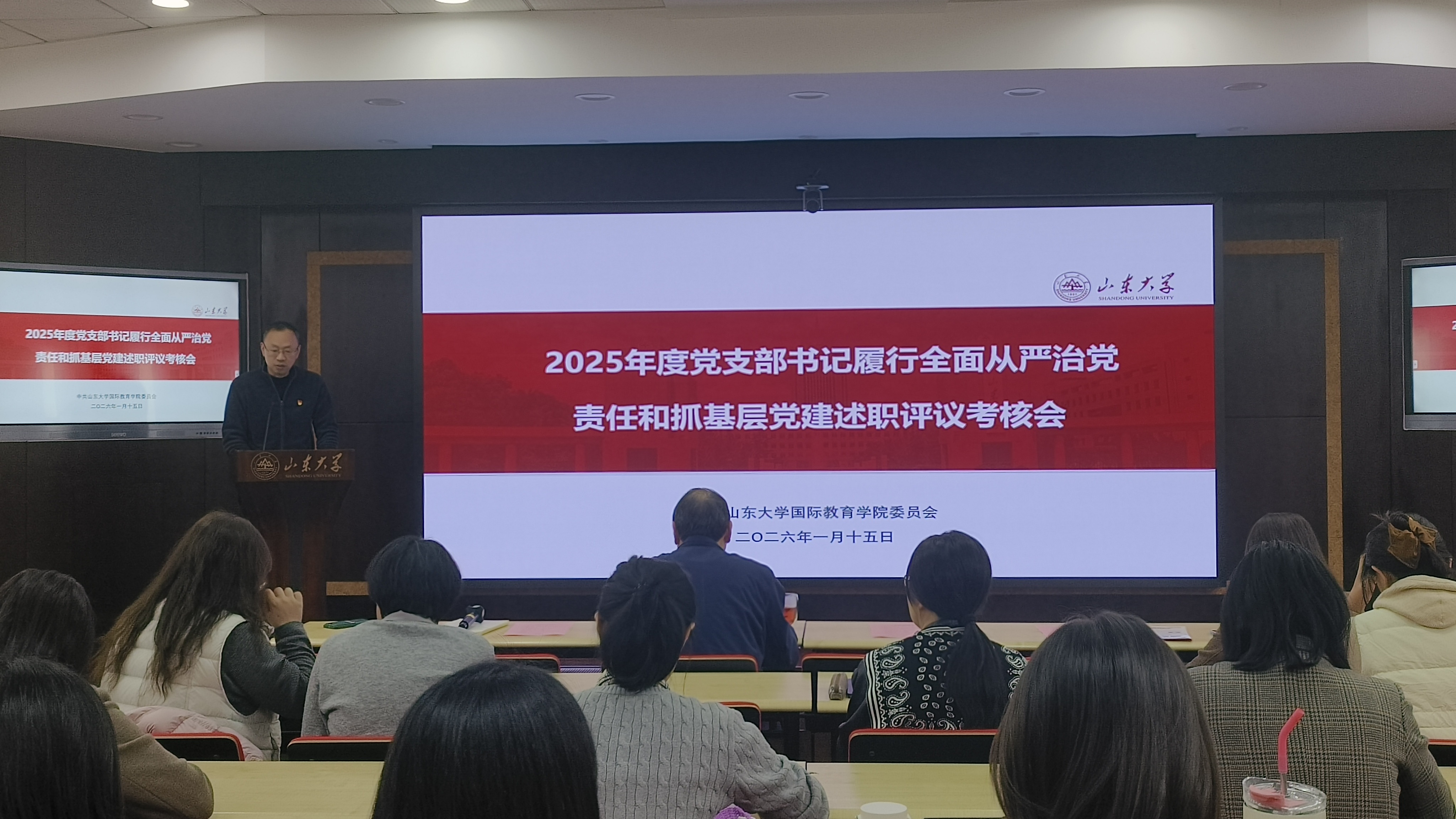 1月15日下午,学院党委举行2025年度党支部书记履行全面从严治党责任和抓基层党建述职评议考核会。学校党建实地考核工作第二小组组长郭举修同志参会指导,学院党委委员、领导班子成员、各党支部书记、委员、系(部)负责人、科级干部、党员代表参加会议。党委书记姬锐主持会议。