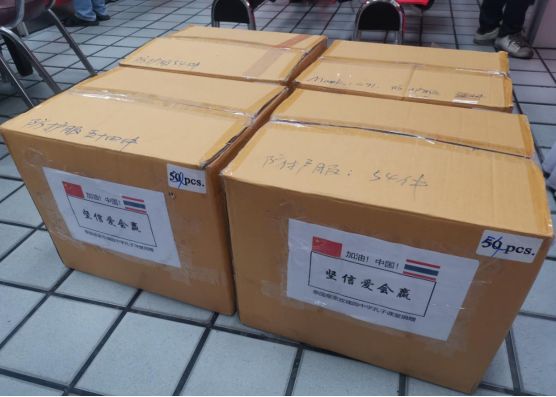 泰国玫瑰园中学孔子课堂的山大外派教师积极组织孔子课堂学生和家长开展物资捐赠,捐赠的物资已经通过EMS寄出,200件医用防护服,50副N95口罩,441件医用口罩定向捐赠beat365英国官网齐鲁医院对接的黄冈医院。