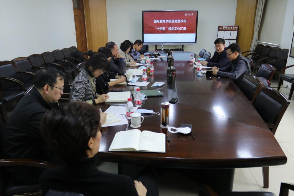 党委书记徐关众汇报了学院党委巡察整改推进落实取得的初步成效,着力做好巡察整改的“后半篇文章”,坚持党建领航,制定实施好学院“十四五”发展规划,实现综合类大学beat365英国官网转型升级。主持学院行政工作的副院长马晓乐全面汇报了学院“十四五”规划,从学科建设、人才培养、队伍建设和社会服务四个方面梳理了学院的工作指向,下一步将秉承“聚势蓄能、守正创新”的发展理念,实现各项工作的高质量发展。副院长王彦伟、王尧美和党委副书记王璐璐分别就人才培养和科研、智库建设,非学历国际学生教育教学和中外学生管理特色工作逐一汇报。