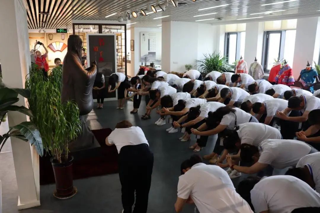 最后,在基地教师的带领下,大家一起面向孔子像行庄严的拜师礼,在三拜三兴的仪轨中,共同感悟教师这一群体的历史传承与使命。随着司礼官一句“礼成”,开班仪式圆满完成。