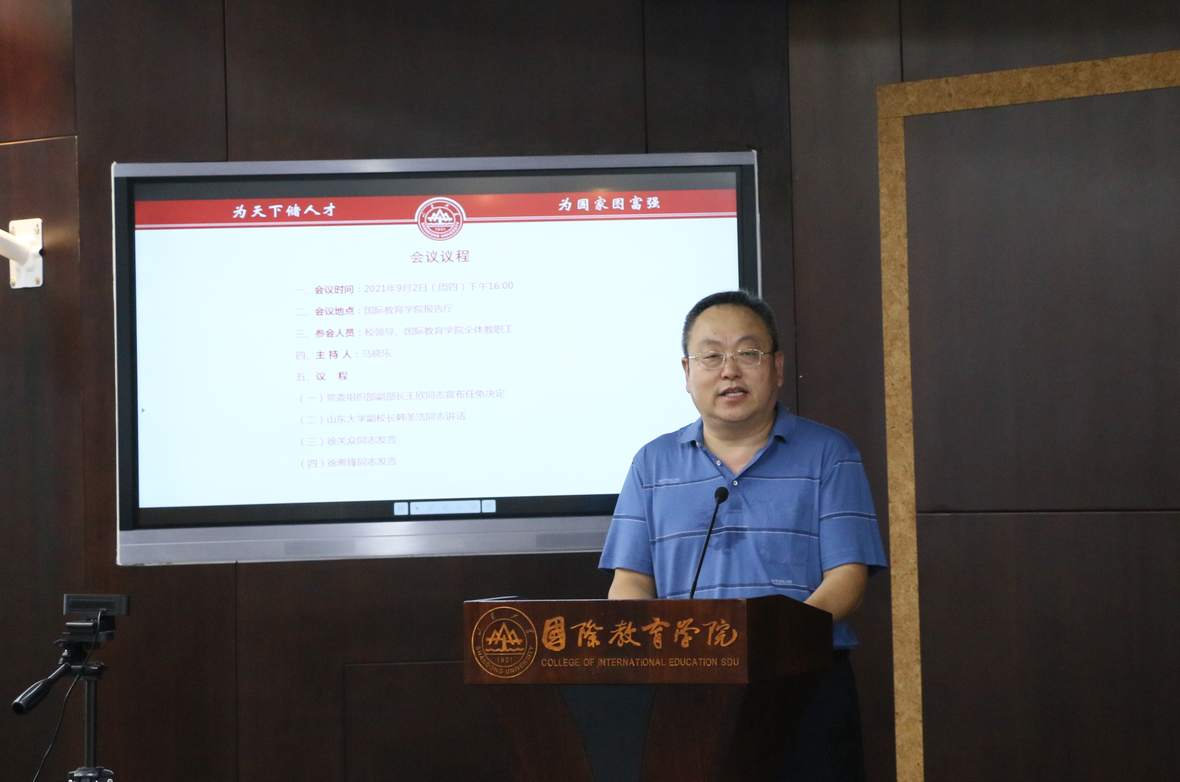 9月2日下午,beat365英国官网召开新学期全院教职工大会,会议分两个阶段进行。第一阶段,会议传达学校精神,全面部署学院工作。第二阶段,党委组织部宣读人事任免决定,韩圣浩副校长发表讲话。