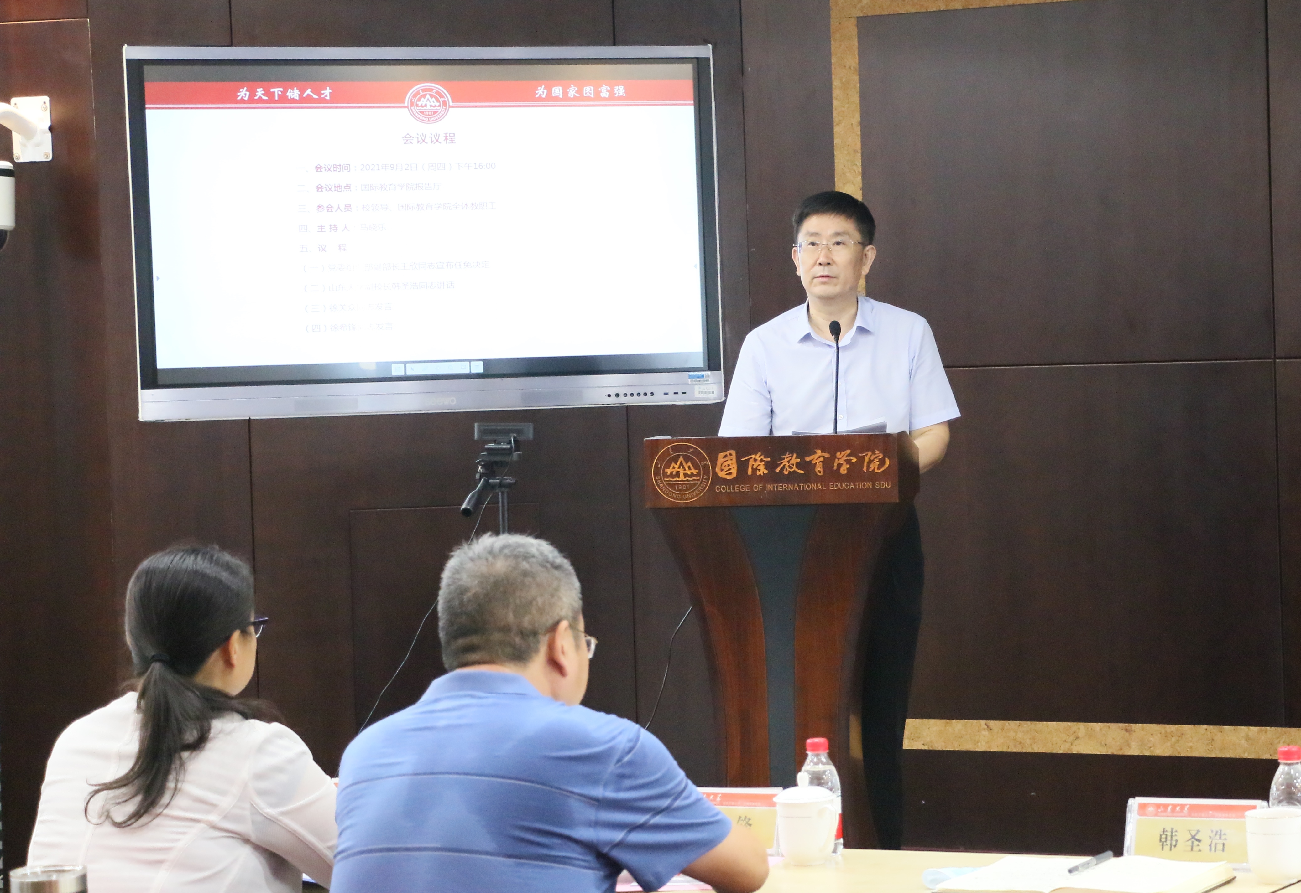 副院长王彦伟对学院科研工作做出整体安排,介绍了项目组织申报、校庆筹备工作、年度国际中文教育研究课题和专项申报等重点工作,对教研空间和资源分配做出说明。汉语国际教育系、对外汉语教学部、来华留学生预科部的三位主任分别汇报了各系部的学生情况、教科研情况和学期教学科研工作重点。会上还介绍了新入职的教师,鼓励教职工共谋学院发展。