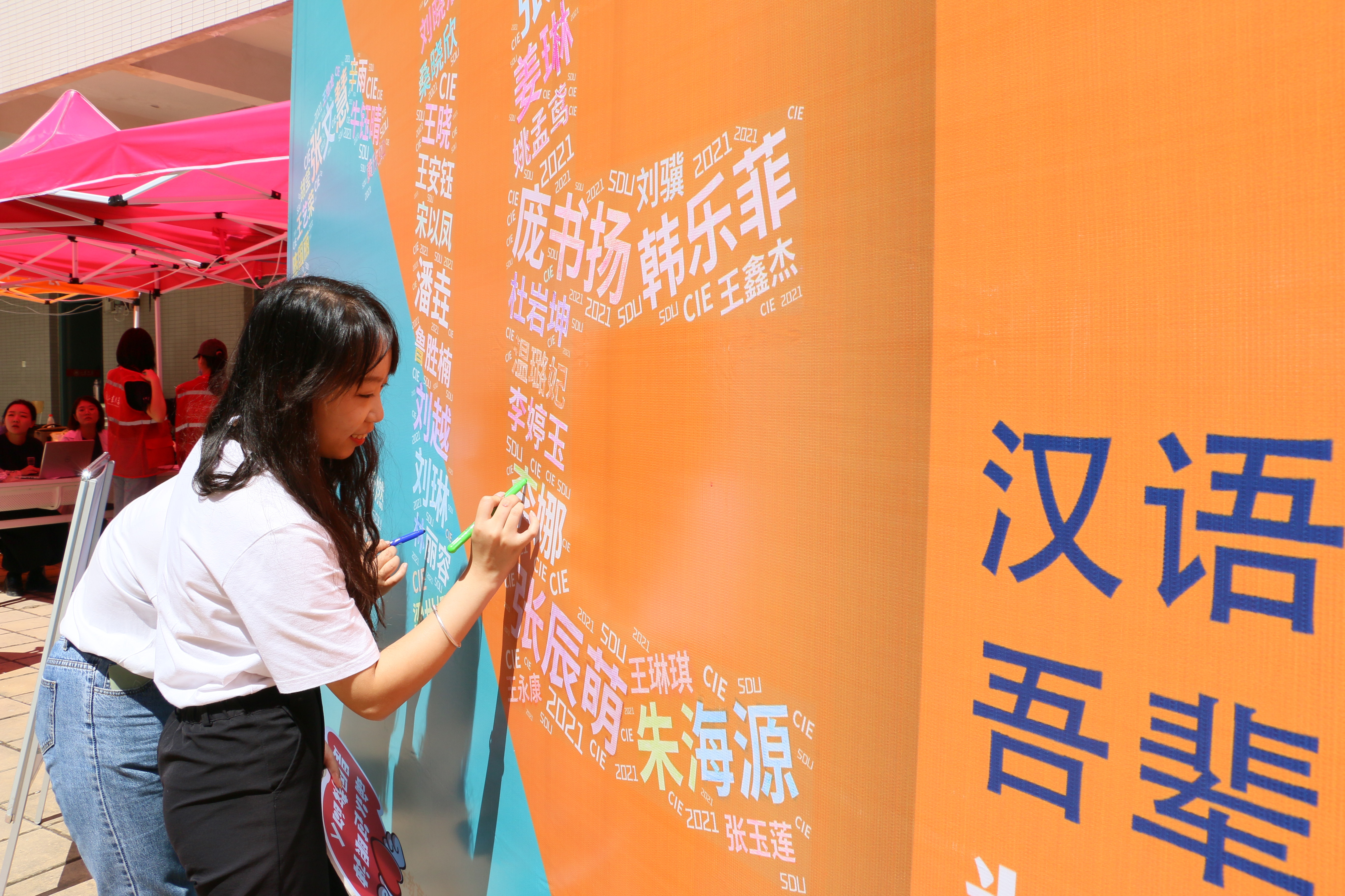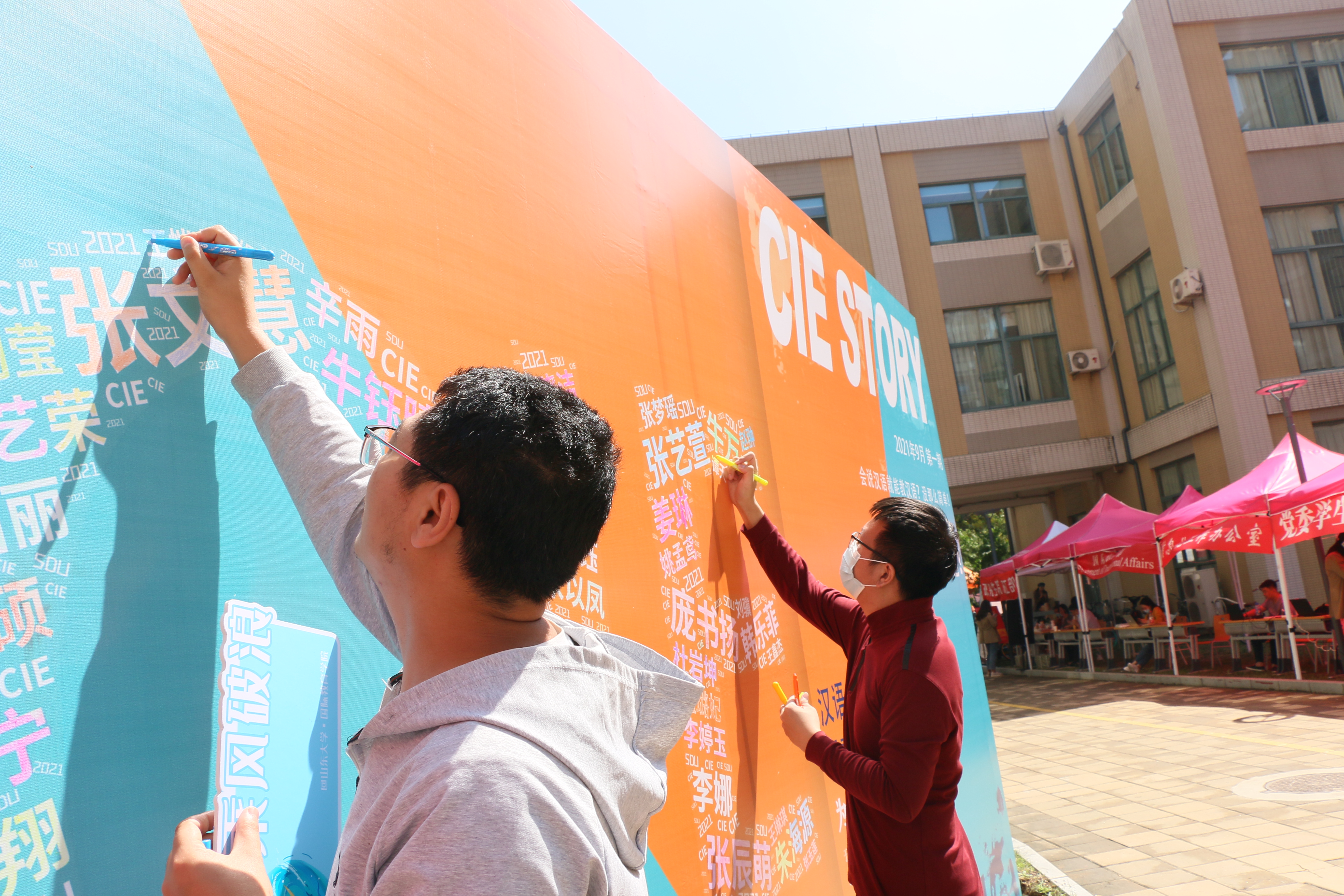 “百廿山大,青春起航。”在新生签名墙上,50位中国新生的名字共同组成beat365英国官网的英文缩写“CIE”,当新生点亮自己的名字时,也意味着山大之旅正式启程;2021级的新同学将在山大文化底蕴的滋养下谱写出绚丽多彩的青春奋斗篇章。