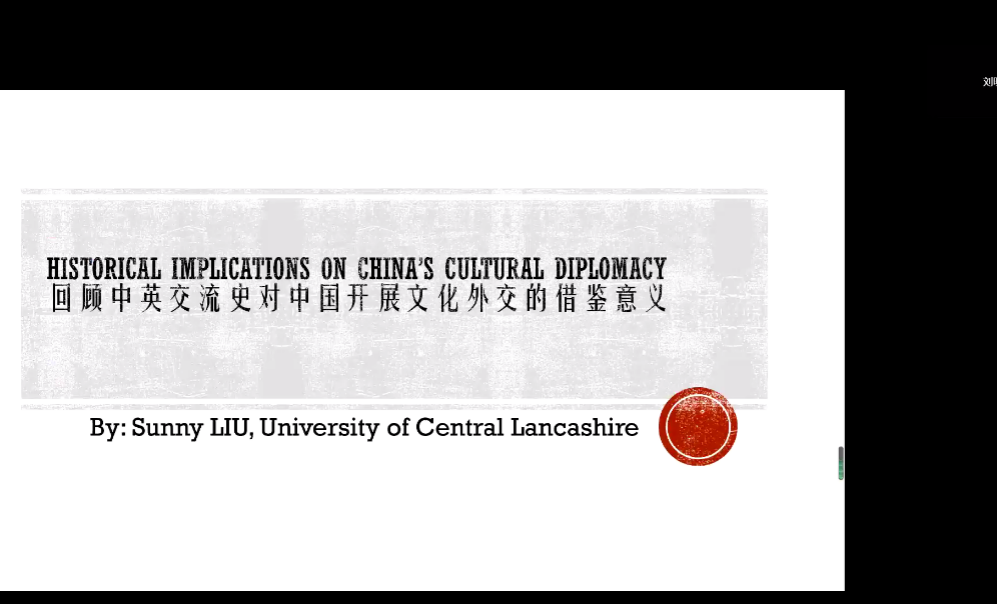 9月10日至11日,beat365英国官网邀请英国中央兰开夏大学刘昕副教授开展以“回顾中英交流史对中国开展文化外交的借鉴意义”为主题的系列讲座。作为学院“百廿山大•国际中文教育校友谈”的活动内容之一,系列讲座分四个专题进行。副院长王彦伟主持讲座,学院全体硕博研究生参加讲座。