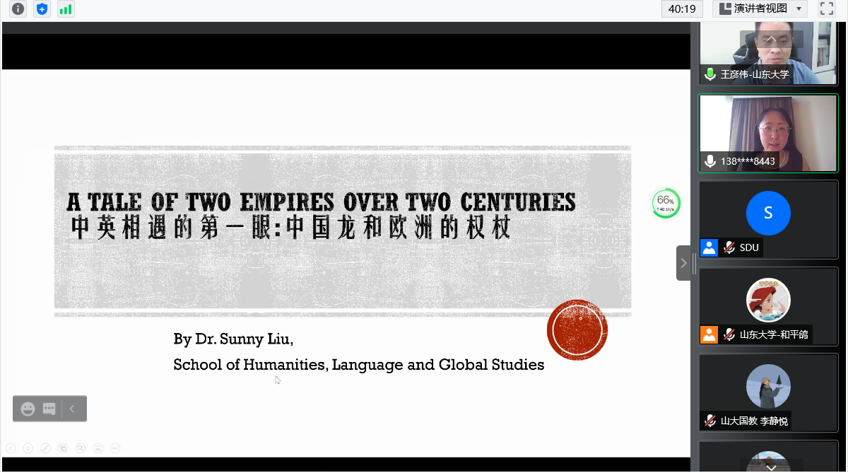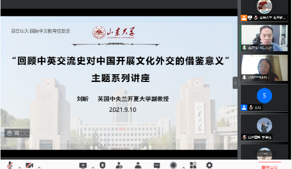为营造学校百廿校庆学术氛围,了解国际中文教育领域学术和一线发展动向,beat365英国官网策划开展“国际中文教育·院长谈”“国际中文教育·校友谈”“国际中文教育·编辑谈”等系列学术活动,分别邀请一批海内外国际中文教育领域的院长(教育机构负责人)、从事中文教育和文化传播的校友、行业期刊和出版社编辑开展交流活动。本次系列讲座是“国际中文教育·校友谈”的内容之一,主讲人刘昕随父母在山大学习生活多年,后于英国中央兰开夏大学获博士学位后留校任教至今,主要研究领域为中国文化外交、公共外交、国际关系等,任亚太研究所(ISAP)中国研究中心的主席,被授予英国高等教育学院的国家级教学研究员称号。