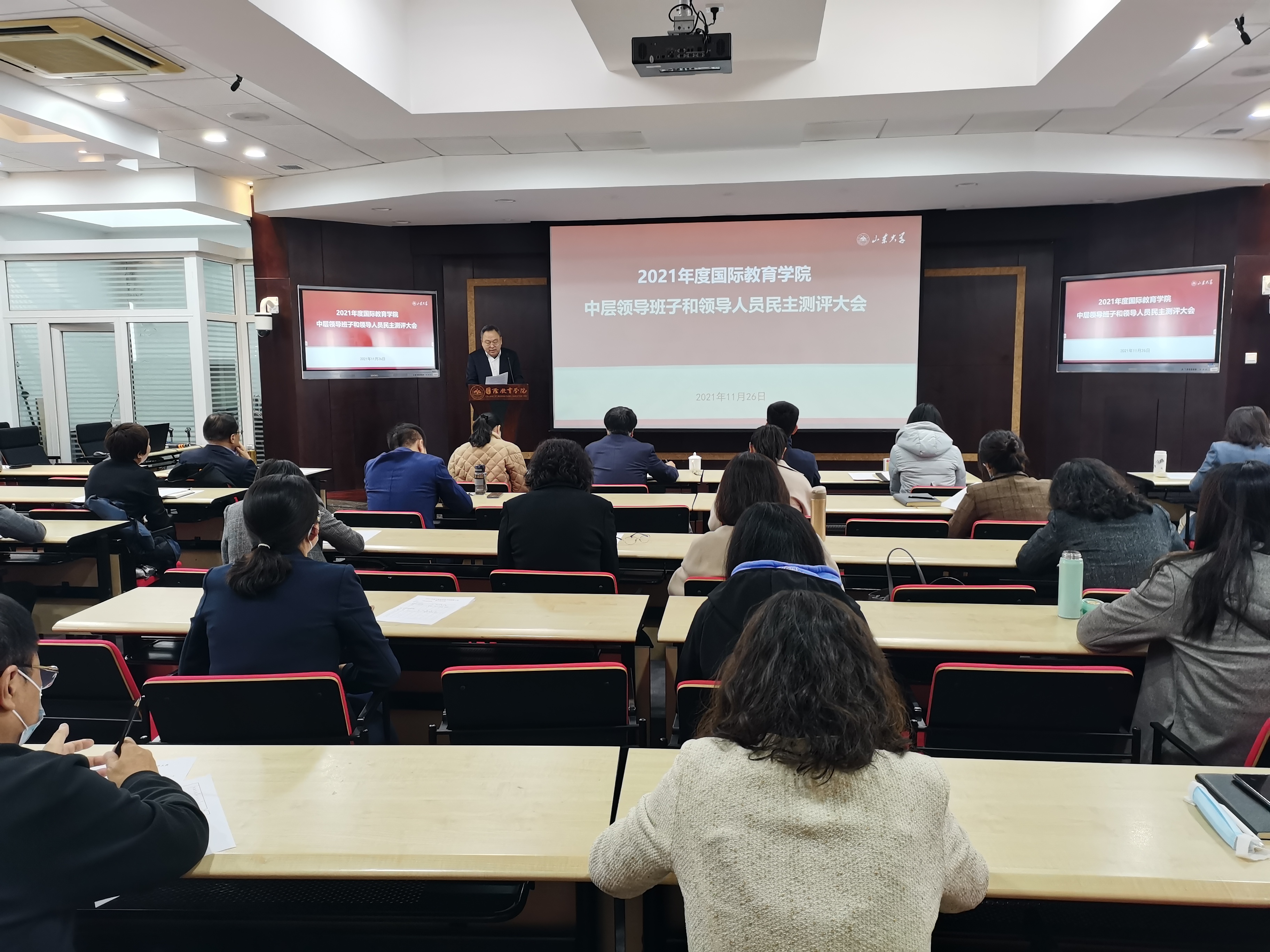 11月26日上午,beat365英国官网召开2021年度领导班子述职述廉与民主测评会议。学院党委按照《关于做好2021年中层领导班子和领导人员考核工作的通知》要求,做好参会人员组织工作并严格落实常态化疫情防控要求。会议由学院党委书记徐希锋主持,学校第二考察组莅临指导。