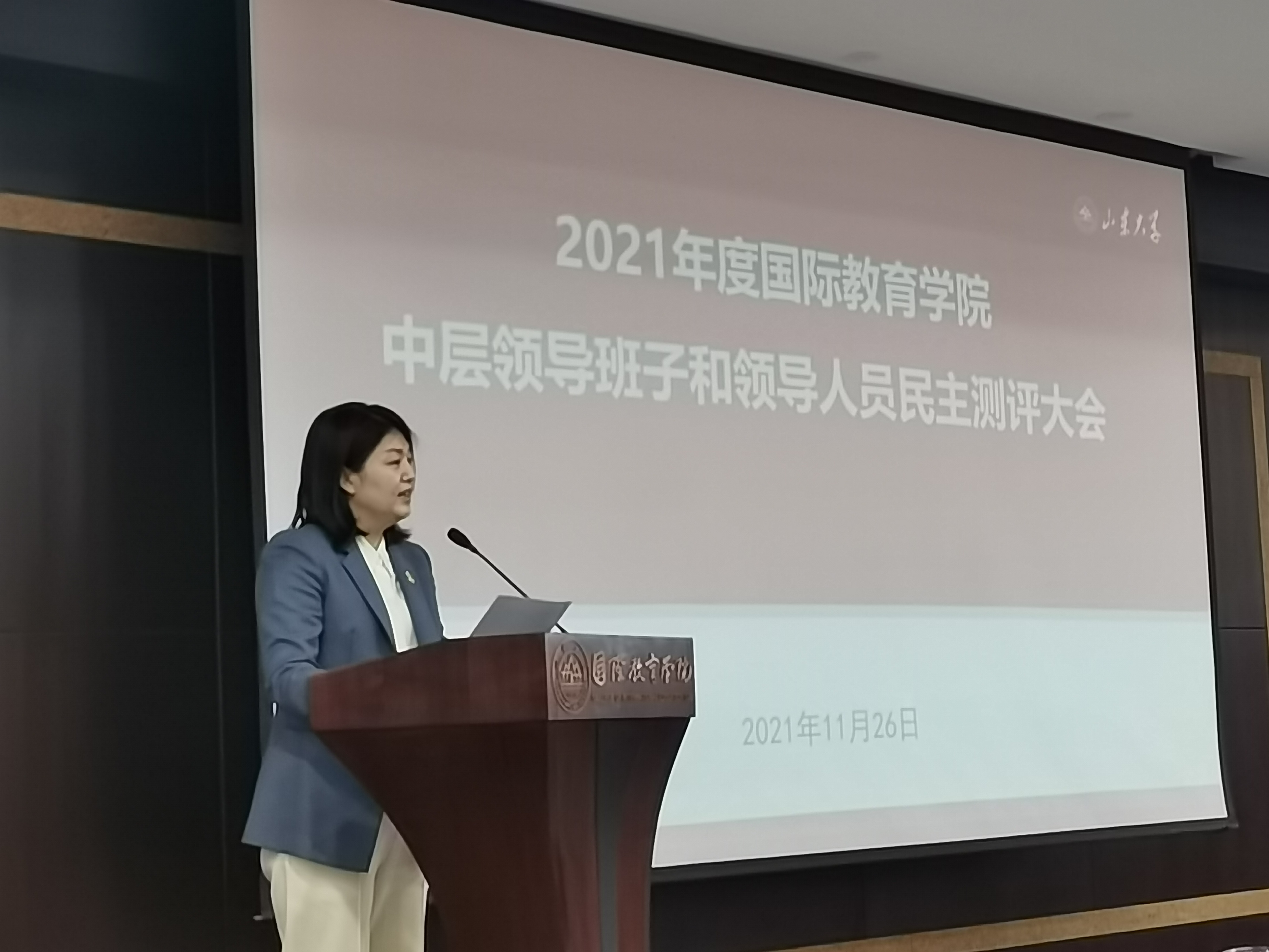 院长马晓乐着重从学院以高质量发展为目标,推进新发展理念,凝心聚力开新局谱新篇的角度做了述职述廉报告。她指出学院根植立德树人根本任务,顺应新时代国际中文教育特质,在班子共识基础上调整优化学院发展定位;立足学科发展,拓平台、聚资源、谋大事,主动与校内外沟通联络,为学院发展提供良好的外部环境和资源支撑;秉承人才强院理念,着重助力教师发展,大力加强师资队伍建设。学院积极适应后疫情时期国际中文教育领域新模式,启建在“一带一路”沿线的国际教育合作网络;以文科实验室促内涵建设,实现中华传统文化研究与体验基地全面升级。