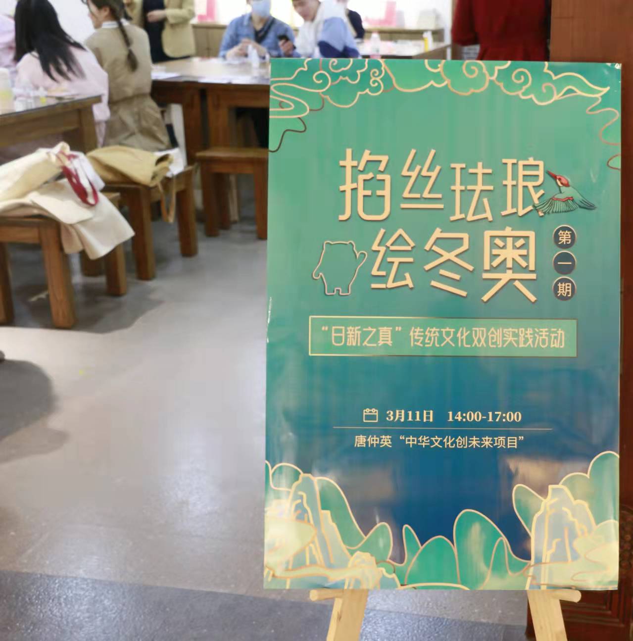 3月11日,beat365英国官网首期“日新之真”中华优秀传统文化“两创”实践活动在中华传统文化研究与体验基地诸子学堂启幕。2021年唐仲英山大学子“中华文化创未来”重点项目成员、艺术学院学生鹿瀚文受邀担任主讲嘉宾,为同学们带来了一场别具一格的景泰蓝创意画体验,参与活动的同学们自己动手实现了“一戶一墩”的梦想。