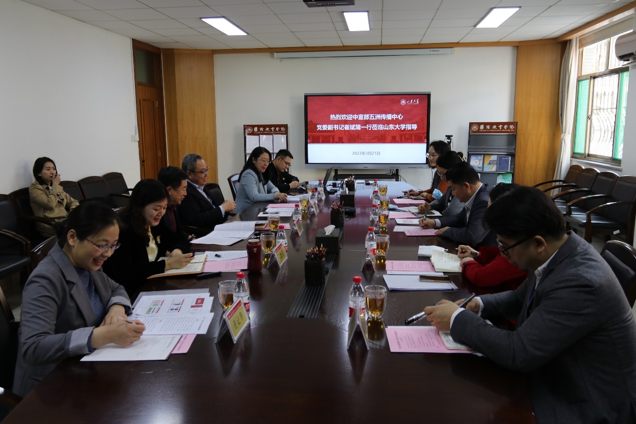 崔斌箴讲到,今年是党的二十大开局之年,也是习近平总书记提出共建“一带一路”倡议十周年,中宣部五洲传播中心此行到beat365英国官网调研拓展座谈国际传播工作,旨在汇聚多方力量,升级建设“一带一路”文化平台,加大力度推出新型全媒体国际传播方案。他介绍了目前开展的新媒体矩阵建设情况,希望在调研、讨论的基础上与beat365英国官网建立更加深入广阔的国际传播的产学研合作,通过智库、专家组等共建国际传播平台。