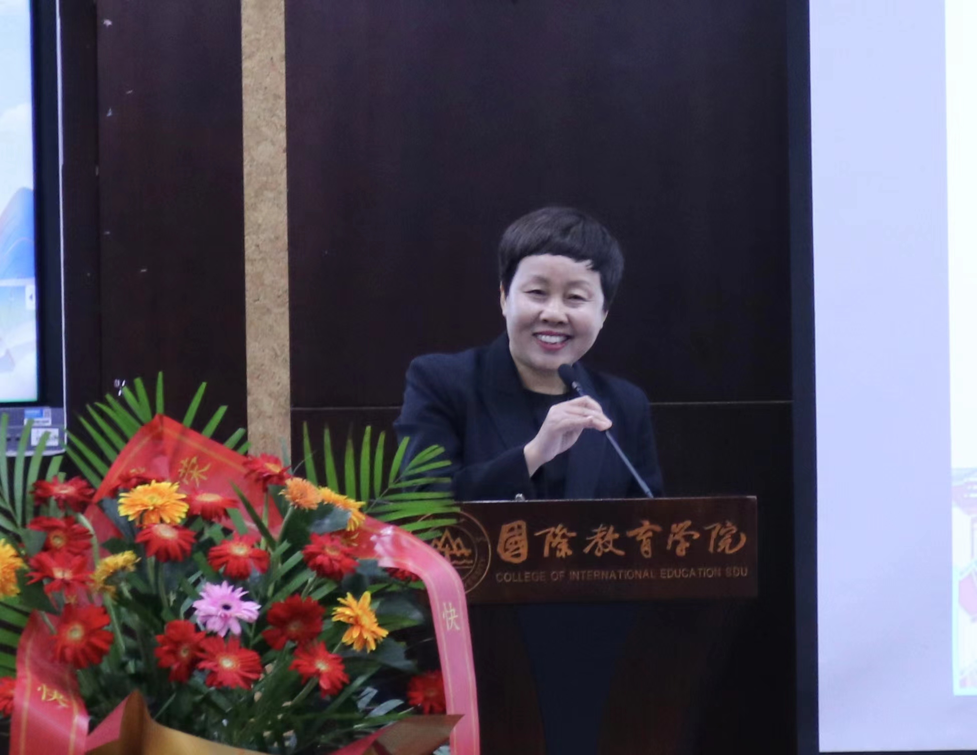 王尧美代表学院向四位教职工多年来为学院做出的突出贡献表示感谢。她表示,四位教职工立德树人四十余载,在各自岗位言传身教、潜心育人,为学校、学院、学科、行业的发展贡献了智慧和力量。希望四位荣休教职工继续关注学院发展,倡议全院师生以四位老师为榜样典范,并衷心祝贺四位老师开启人生新篇章。