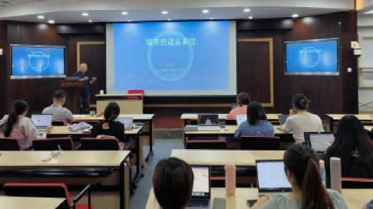 在交流环节,师生就“城市景观‘悦己秀’的含义”、“城市景观激发情感共鸣”及“城市语言景观分类标准”等话题进行讨论。