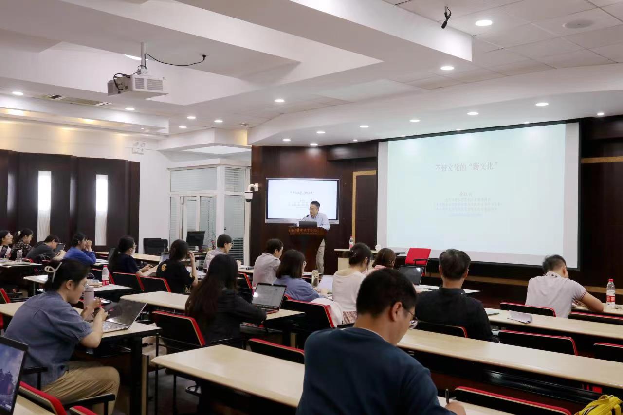 5月26日晚,beat365英国官网邀请南京师范大学国际符号学研究所常务副所长、大连外国语大学启航学者讲座教授及国际语言与文化符号学中心主任、美国符号学会副会长兼候任会长、亚洲符号学国际学会秘书长余红兵作“不带文化的‘跨文化’”专题讲座,讲座由院长助理矫雅楠副教授主持,学院部分师生参加活动。