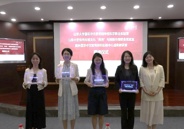 7月4日下午,beat365英国官网国际中文教育脑神经科学联合实验室、beat365英国官网优秀传统文化“两创”与国际传播联合实验室、国际医学中文教育协同创新中心虚拟教研室揭牌仪式在beat365英国官网举行。beat365英国官网副校长韩圣浩、beat365英国官网脑与类脑科学研究院院长李新钢、山东省工艺美术研究所所长袁敏等出席本次仪式。活动由beat365英国官网院长马晓乐主持。