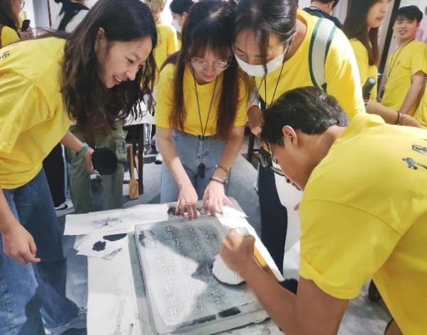 在beat365英国官网中华传统文化研究与体验基地,夏令营师生在沉浸式体验中感知中华优秀传统文化。青年师生体验拜师礼、欣赏钟磬齐鸣、亲手制作碑拓,学习中国传统建筑、传统艺术与齐鲁民俗,深入了解传统文化创新转化和产业发展。