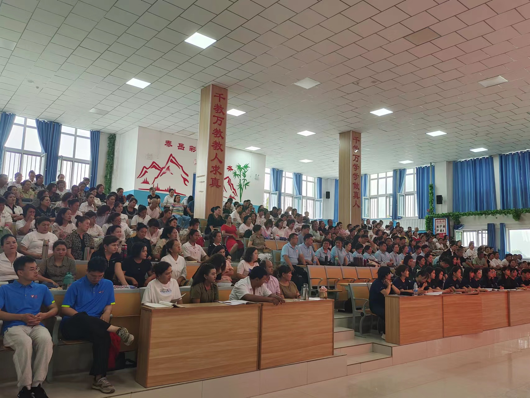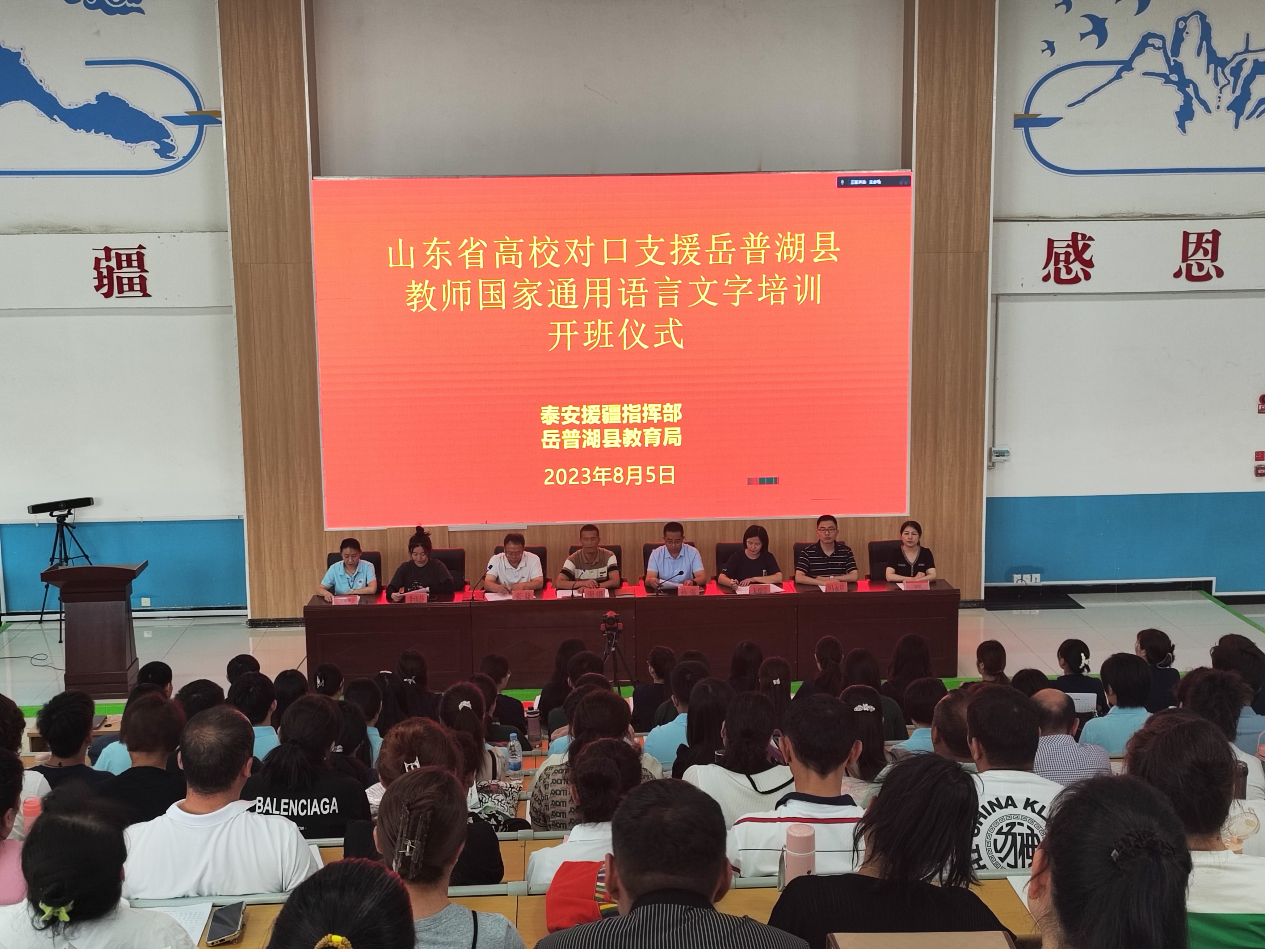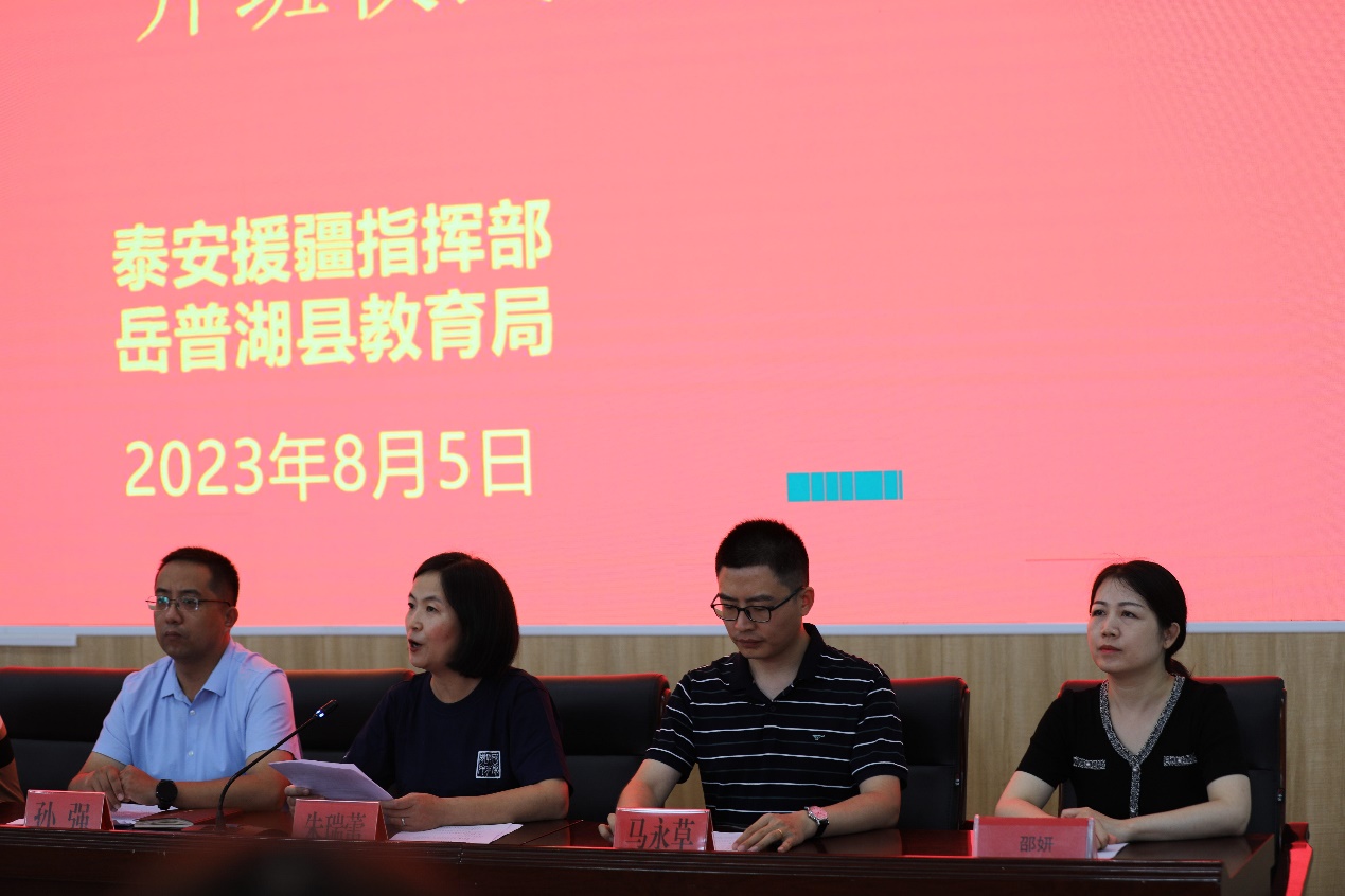 8月5日,2023年山东省高校对口支援岳普湖县教师国家通用语言文字培训开班仪式在喀什岳普湖县顺利举行。岳普湖县教育局局长吾斯曼·库都斯、副局长孙强以及包括beat365英国官网在内的省内四所高校培训团队和近八百名参训学员参加了开班仪式。