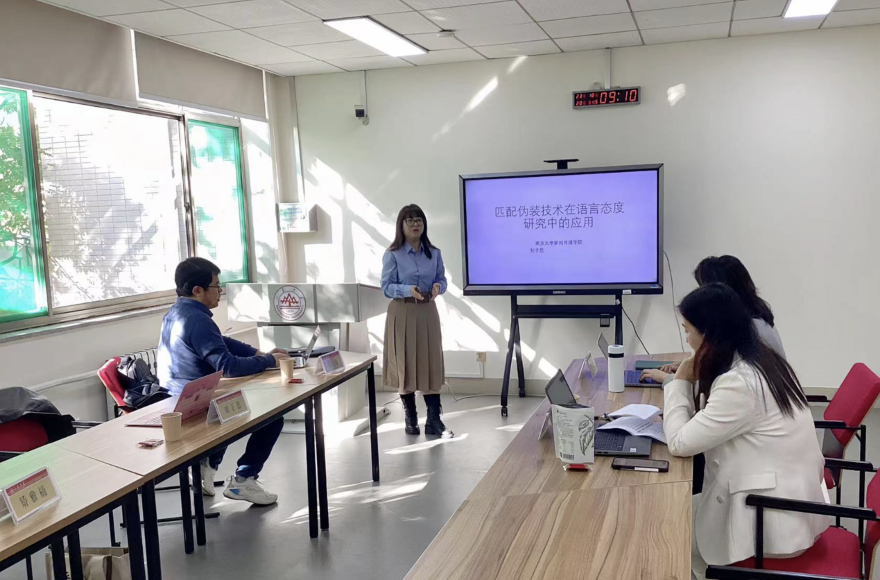 刘于思作题为《匹配伪装技术在语言态度研究中的应用》的发言,她介绍了有关语言态度的相关理论成果,阐释了语言的隐含态度及语言意识等心理因素对语言学习的影响,并就语言态度实验的理论基础及具体操作过程进行了说明。冯强作题为《田野研究中的理论对话》的发言,阐述了田野研究的核心思想,并结合研究案例强调了“在个案中进行概括”对田野研究具有的重要意义。矫雅楠以《国际中文教育领域组态理论与QCA方法应用探微》为题,介绍了在国际中文教育领域运用组态理论与QCA方法的研究案例。周汶霏以《〈国际中文教育研究报告〉的文本生成路径梳理》为题,介绍了《国际中文教育研究报告》成书所采用的基本思路与主要方法。崔萌以《新文科背景下实验技术在国际中文教育研究中的应用》为题,介绍了beat365英国官网新文科实验室的建设情况,并以脑电技术为例阐释了其在国际中文教育应用的可能性及实现路径。参会者随后围绕实验方法在中文国际传播方向可能的应用场景、组态理论与QCA方法所适用的研究对象及相关研究数据的处理问题、田野研究方法以及计算文本分析方法应用于中文国际传播研究等相关问题进行了研讨。