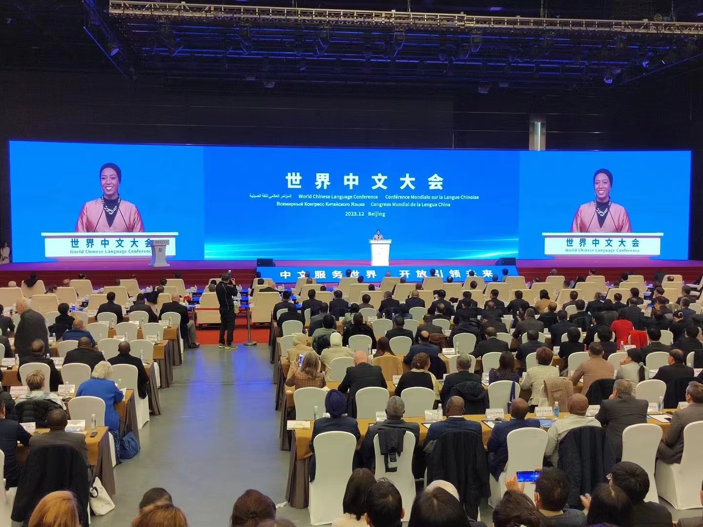 2023世界中文大会由中华人民共和国教育部主办,中外语言交流合作中心、中国国际中文教育基金会、世界汉语教学学会联合承办,以“中文服务世界,开放引领未来”为主题,特设全体会议、主论坛两场重点活动,以及首届世界青年汉学家论坛、第二届中海语言文化论坛、孔子学院未来发展论坛、全球中文联盟大会、世界中文大会语言展等10余场国际论坛、展览。来自160多个国家政府、国际组织代表,国际语言文化机构负责人,大学校长,中文教育专家,汉学家,驻华使节,以及中文教育机构(企业)代表等约2000人参加大会。