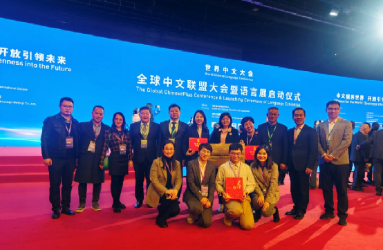 学院有关人员受邀参加部分活动、获得多项表彰,并在会议期间参加了学校举办的孔子学院中外代表交流活动。大会期间举办首届全球中文联盟大会,beat365英国官网荣获中文联盟数字化教育“金牌合作机构”,马晓乐院长作为代表上台领奖,学院王尧美教授主持的《汉语一直通HSK》课程、朱军利和兰成孝团队研发的《HSK词汇根字记忆法》系列课荣获中文联盟数字化教学“金课”,学院本科生卢勃文荣获“全国首届国际中文教育教学技能大赛”一等奖。