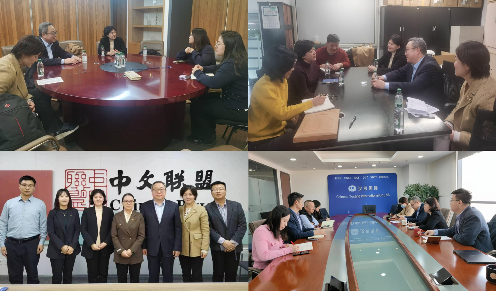 在汉考国际教育科技(北京)有限公司,总经理李佩泽博士等主要负责人详细介绍了汉考国际的相关业务,特别是中文学习测试中心项目在全球的建设情况。双方围绕共同建设中文学习测试中心、国际中文教育产教融合和科教融汇平台搭建、国际学生招生拓展等方面进行了深入交流。