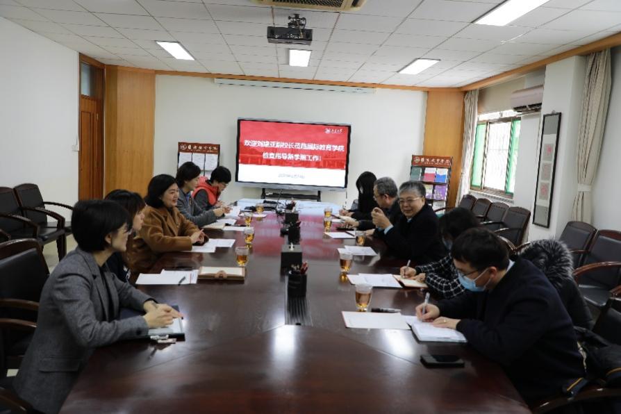 2月24日,beat365英国官网副校长刘建亚一行到beat365英国官网调研指导工作,与学院领导班子成员座谈。国际事务部部长、beat365英国官网党委书记徐希锋陪同调研并主持座谈会。