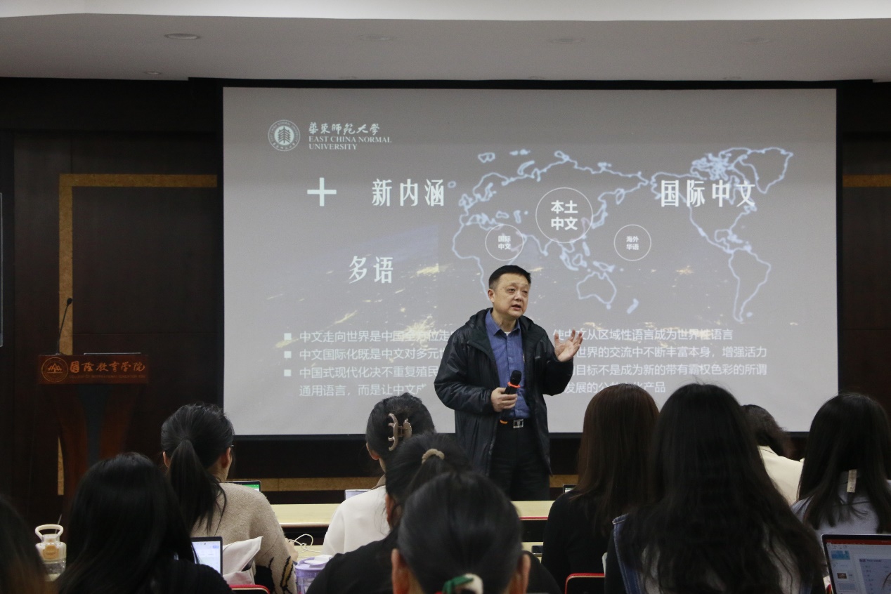 叶军从国际中文教师的专业认知、专业发展和职业路径三个层面出发,指出国际中文教育教师的职业发展是由职业认同、实践反思、探究学习、自主决策组成的循环上升的过程。他表示,中文走向世界是中国全方位走向世界的必然结果。从“对外汉语教学”到“汉语国际教育”再到“国际中文教育”,“新名称”展示了专业“新特征”与“新内涵”,同学们应该明确“新任务”和“新方向”,勇于肩负让中文从区域性语言成为世界性语言的历史使命,在职业发展的不同阶段持续积累理论知识,不断提升教学能力。