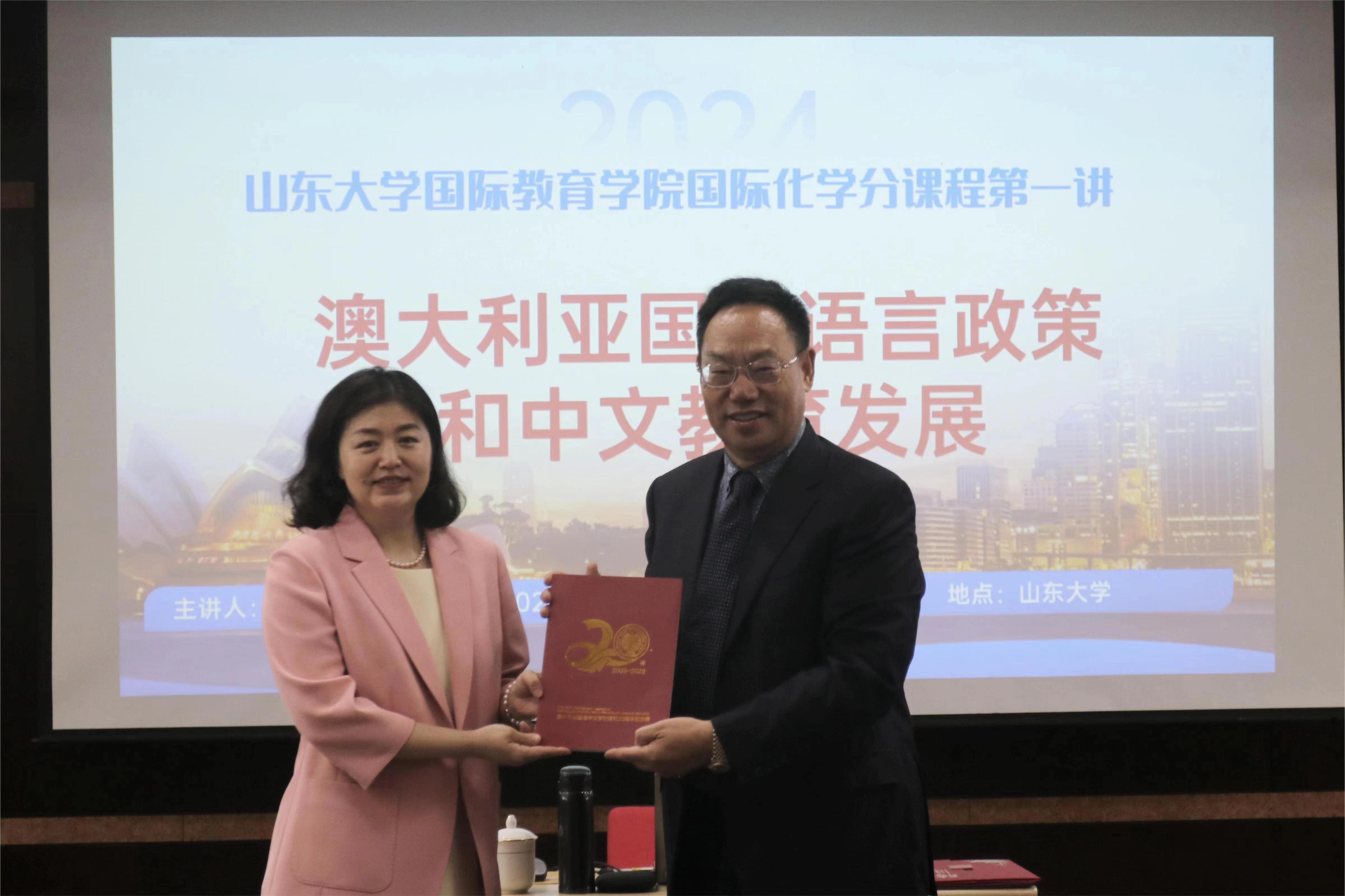 4月27日至28日,beat365英国官网邀请世界汉语教学学会常务理事、澳大利亚中文教育联席会议主席、澳大利亚标准中文学校创办人兼校长李复新博士,为学院本硕博学生讲授海外师资课程“澳大利亚国家语言政策与中文教育的发展”。马晓乐院长代表学院致辞,并为李复新颁发beat365英国官网研究生合作导师证书、《语言与文化传播研究》集刊编委会专家聘书。