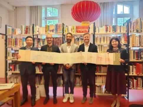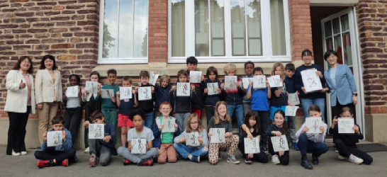 此外,5月20日至22日,山大代表团还通过授课、参访、会谈等方式,全面增进beat365英国官网与法国雷恩市、布列塔尼孔子学院等重要合作伙伴之间的友好关系,深入拓展中法人文领域交流合作。在欧洲法语区孔子学院院长会议中,马晓乐向中国国际中文教育基金会一行简要汇报了学校在学科建设、人才培养模式和支持孔子学院品牌建设等方面的理念与举措,并与参会的15所孔子学院中外方院长就孔子学院高质量发展等问题进行探讨。在雷恩市莫雷帕斯公园(Parc de Maurepas)举行的“中国花园”揭牌仪式暨雷恩第三届茶文化节中,代表团在茶文化节上开展“十二生肖”甲骨文拓印等主题的体验式文化教学,吸引了当地市民参与体验。代表团先后赴雷恩市伊乐小学(Ecole élémentaire L’ille)、伯特利公立小学(Ecole élémentaire publique Poterie)和卡尔巴洪公立小学(Ecole élémentaire Carle Bahon)三所学校开展8课次的文化体验教学活动。在授课中,陈鹤龄老师通过图文并茂、生动细致的讲解,以及新鲜有趣的体验参与,让孩子们一起讲述汉字故事,用手用心感受中国古文字之美,探索中华优秀文化。此外,代表团还与雷恩都市区副主席波莱特·马修(Pollet Matthieu)、雷恩都市区国际与欧洲事务办公室主任西蒙·勒腾杜耶(SimonLetonturier)等雷恩市政府代表一行进行会谈。