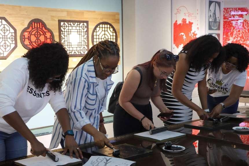 在beat365英国官网中华传统文化研究与体验基地,师生沉浸式体验学习中华优秀传统文化。通过对儒家文化、孔子思想的介绍,学生们对“有教无类”“因材施教”等教育理念有了更多的理解和认同。大家体验了中国传统拓印技术,感叹中国文字和艺术表达方式的独特魅力,表示在体验中感受到中华文化厚重的历史底蕴和文明脉络,增进了对中国历史文化的了解。