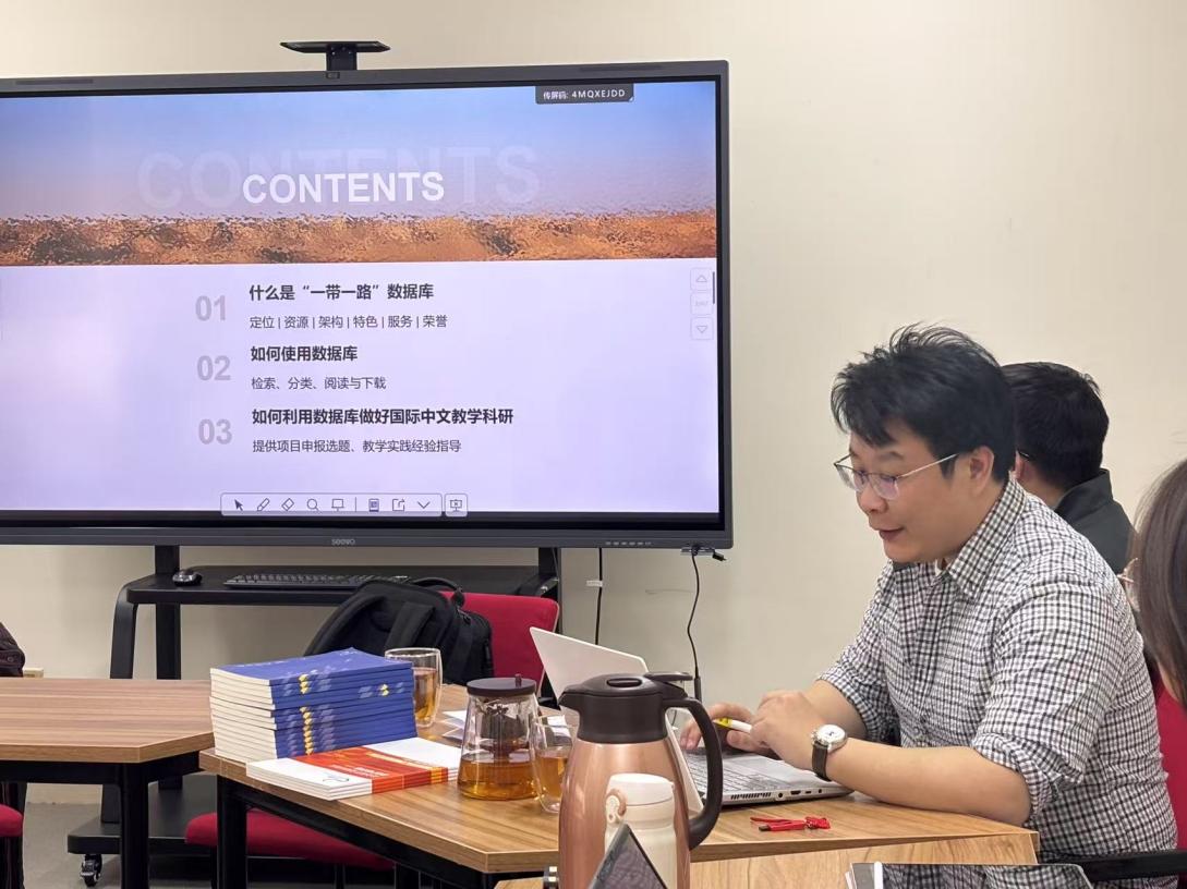 张迅介绍了“一带一路”数据资源的定位、资源、架构、特色和服务等内容,并结合国际中文教学科研新进展,就如何高效运用数据库资源确定项目选题,指导教学实践经验,分享了方法与建议。