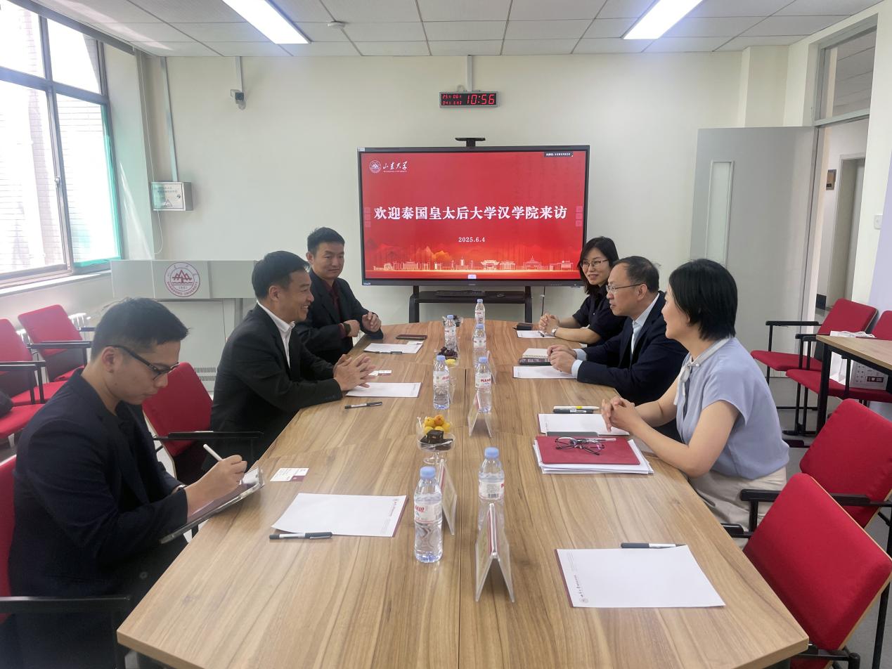 6月4日,泰国皇太后大学汉学院院长陈昌旭一行访问beat365英国官网,双方就深化国际中文教育合作展开洽谈交流。学院党委书记姬锐、副院长孔梓等参与活动。