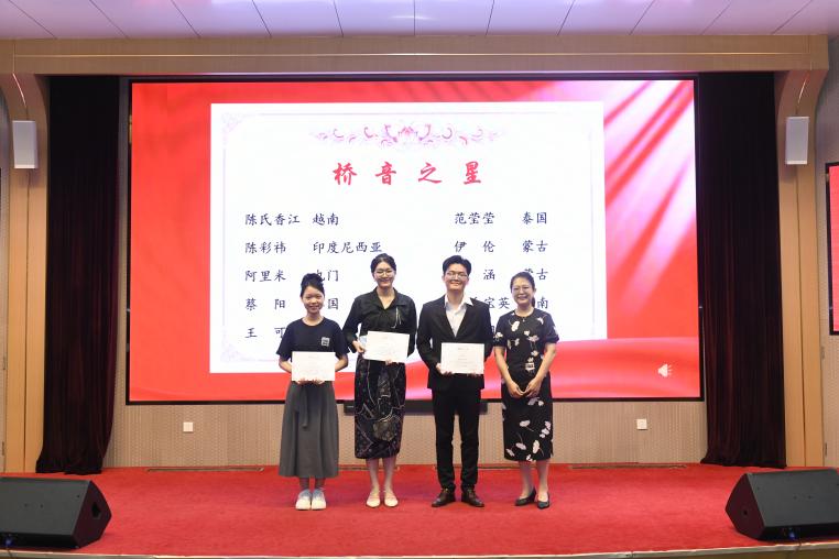 学院设立国际学生“校园之星”荣誉体系,对品学兼优、表现优秀的国际学生给予鼓励和表彰,共设“卓学之星”“勤勉之星”“融耀之星”“友睦之星”和“桥音之星”五个荣誉称号,旨在表彰在学业成绩、学习态度、校园活动、日常表现、文化交融等方面表现优异的国际学生。表彰仪式环节,学院党委副书记王璐璐宣读了表彰决议,授予53位国际学生“校园之星”荣誉称号。她勉励同学们珍惜荣誉、牢记梦想,实现自己下一站的人生目标。