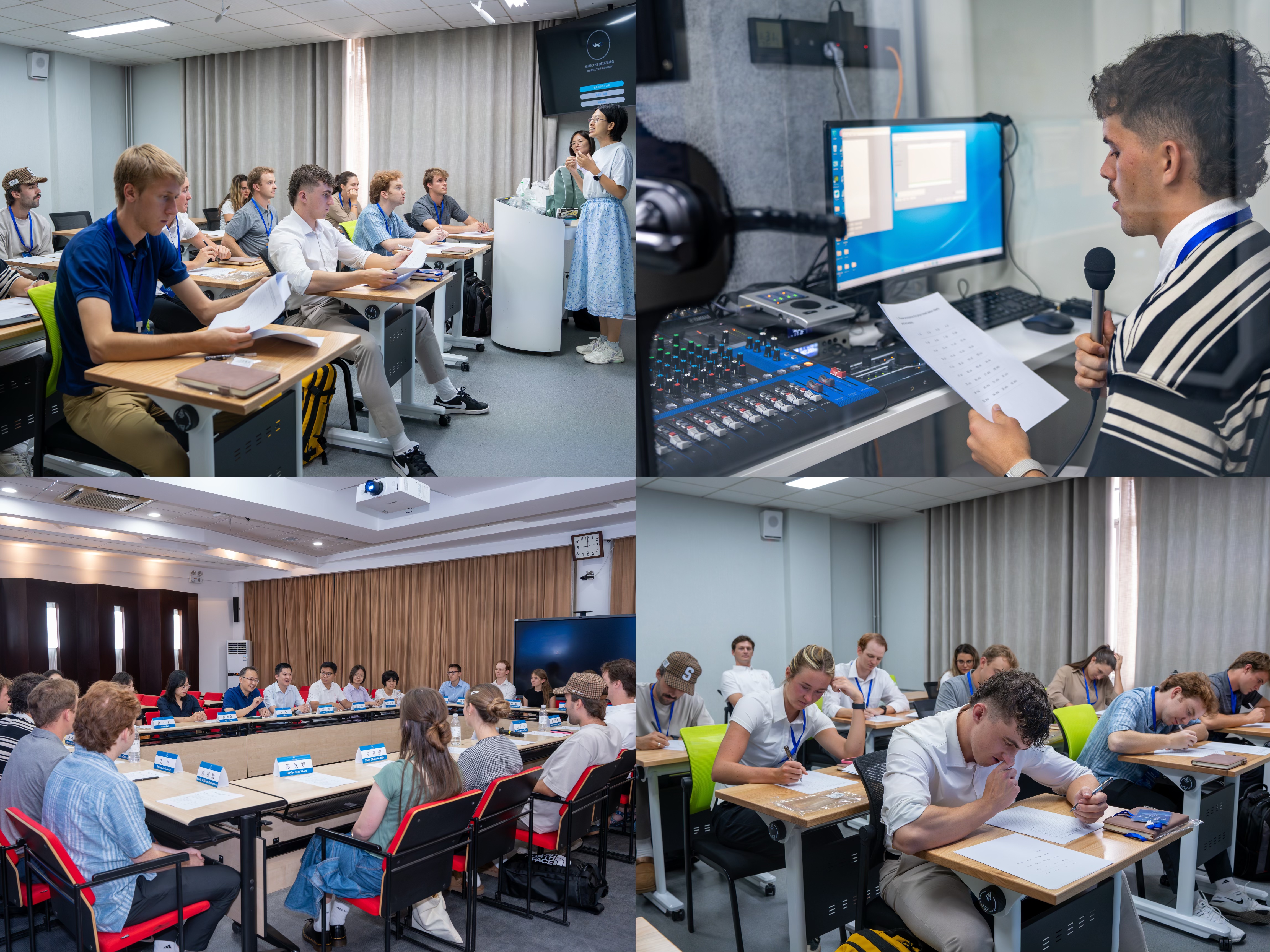 beat365英国官网充分发挥国际中文教育学科优势,针对美国大学生的学习特点和需求,精心设计了“三维一体”的学习方案:在语言提升维度,通过开设科技中国、绿色中国等专题语言课程,结合智能语音实验室的互动训练和情景任务式教学,显著提升了学员的中文实际应用能力;在文化理解维度,创新开发了“语言+文化”融合课程,引导学员从汉字演变、民俗节庆等文化现象切入,深入理解中华文化的内核,培养跨文化共情能力;在城市探索维度,精心规划了上海-济南-泰安-青岛研学路线,让学员们既能感受上海作为国际大都市的科技创新活力,又能体验济南“泉城”的历史底蕴,既能在泰山领悟“天人合一”的哲学思想,又能在青岛感受“红瓦绿树、碧海蓝天”的生态之美。
