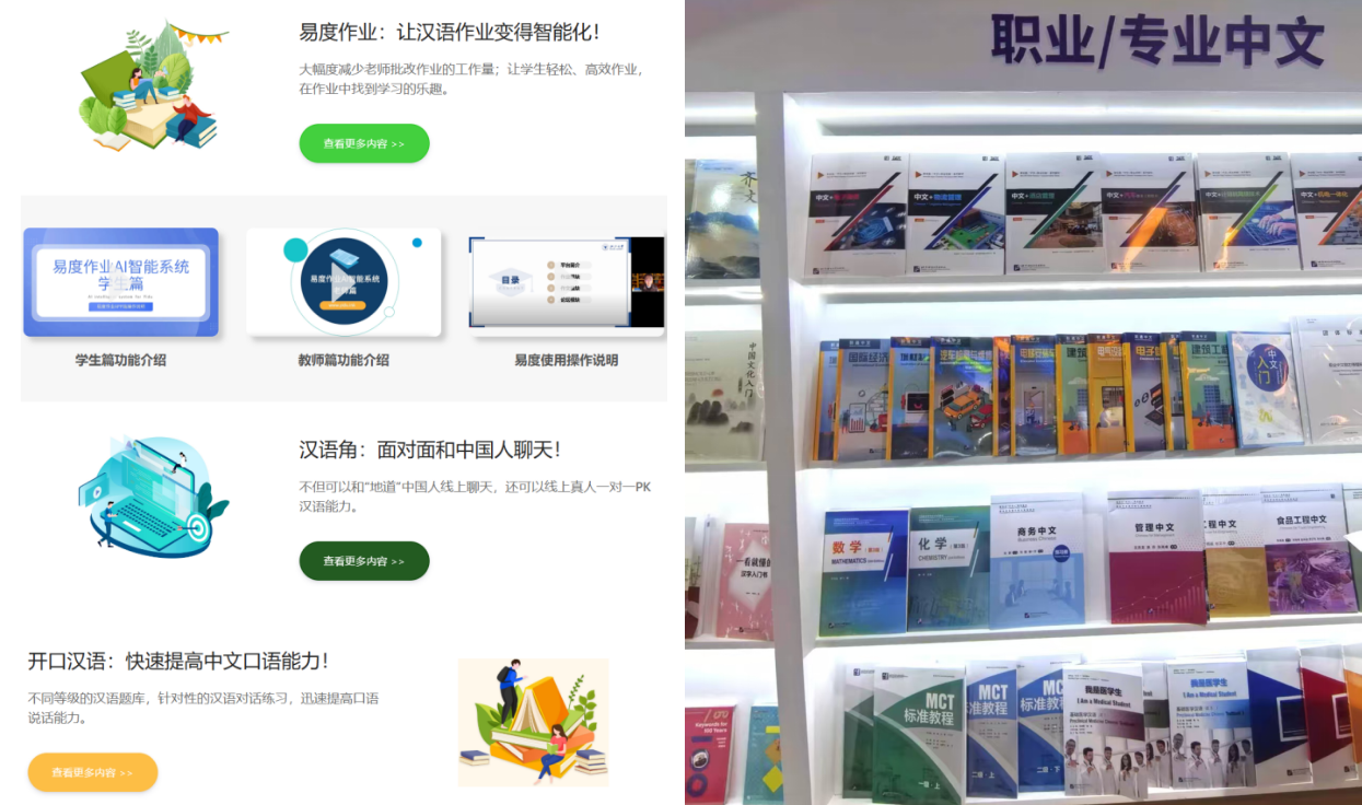 在大会教学资源展上,我院《商务中文》《工程中文》《我是医学生》等面向新兴学习需求的专业中文教材参展。