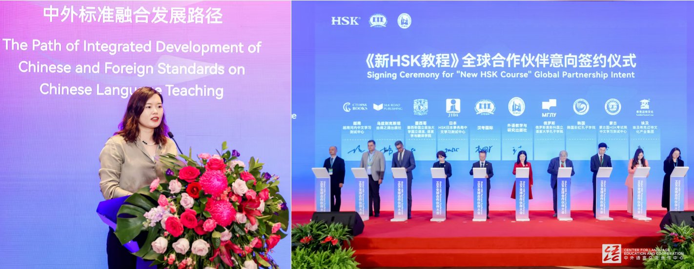 此次大会中,我院校友力量不断涌现。2008届校友、浙江大学助理研究员吴剑研发的“易度中文”智能化平台在学术年会进行了集中展示;2013届校友、圣彼得堡孔子课堂外方校长张蕈丽受邀在“全球视野下的中文教育标准建设”会议上作报告;2013届校友、蒙古国交通发展银行中国合作部总监俊杰(Batjargal Nyamdelger)参加《新HSK教程》全球合作伙伴意向签约仪式。