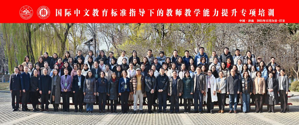 本次培训采取“线上+线下”混合模式,于12月13日至27日期间分阶段实施。北京大学、复旦大学、南京大学、华东师范大学、北京师范大学、北京语言大学等11所高校的18位知名专家,围绕《国际中文教师专业能力标准》《国际中文教学通用课程大纲》《国际中文教育中文水平等级标准》及《国际中文教师数字素养框架(2025年)》等一系列标准体系核心内容,进行系统化、多层次、全覆盖的专题讲授。培训吸引了来自山东、辽宁、吉林、黑龙江四省45所高校的100名青年骨干教师全程参与学习与研讨。