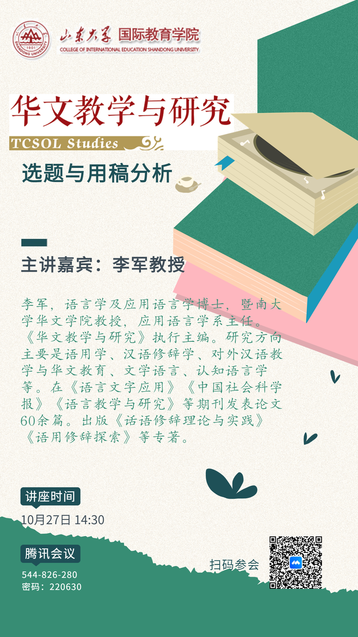李军,暨南大学华文学院教授,《华文教学与研究》执行主编