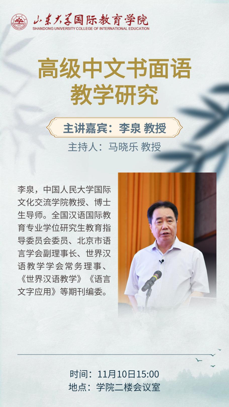 李泉,中国人民大学国际文化交流学院教授、博士生导师