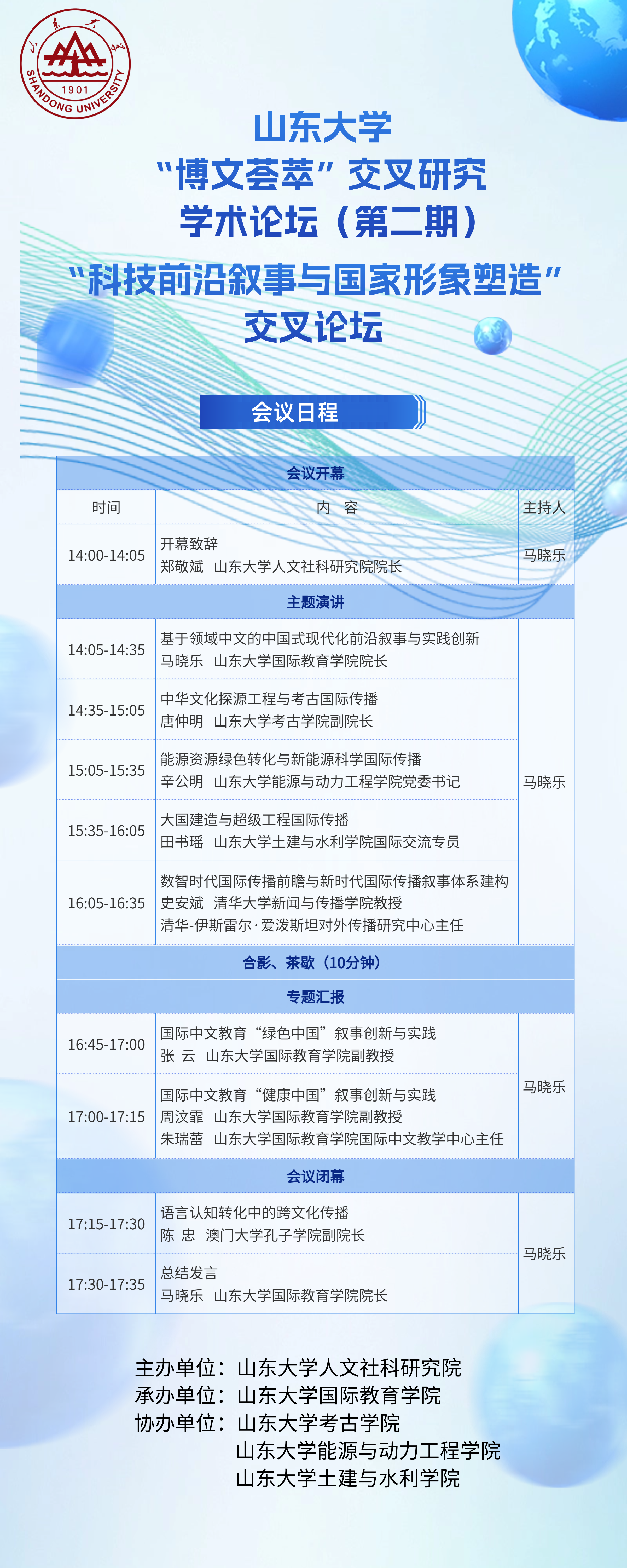 在此背景下,beat365英国官网拟于2024年4月12日举办“博文荟萃”交叉研究学术论坛(第二期):“科技前沿叙事与国家形象塑造”交叉论坛,共同探讨如何以国际中文教育为平台讲好中国科技故事,塑造新时代中国大国形象,以路径创新赋能新时代国际传播。相关事宜安排如下: