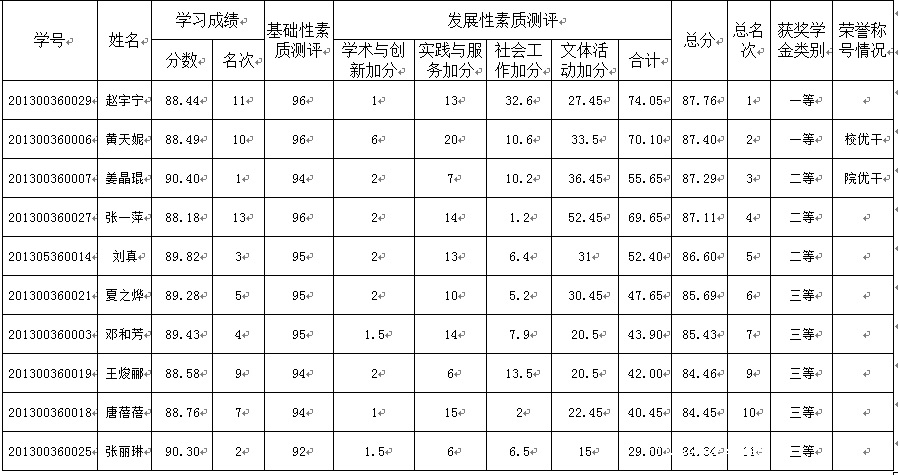 beat365英国官网2014年度本科生综合素质测评及评奖评优结果公示