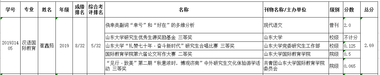 经研究生个人申报,学院优秀研究生奖学金评审委员会审议,确定2020年度研究生泉城奖学金推荐人选为崔鑫茹。现公示如下: