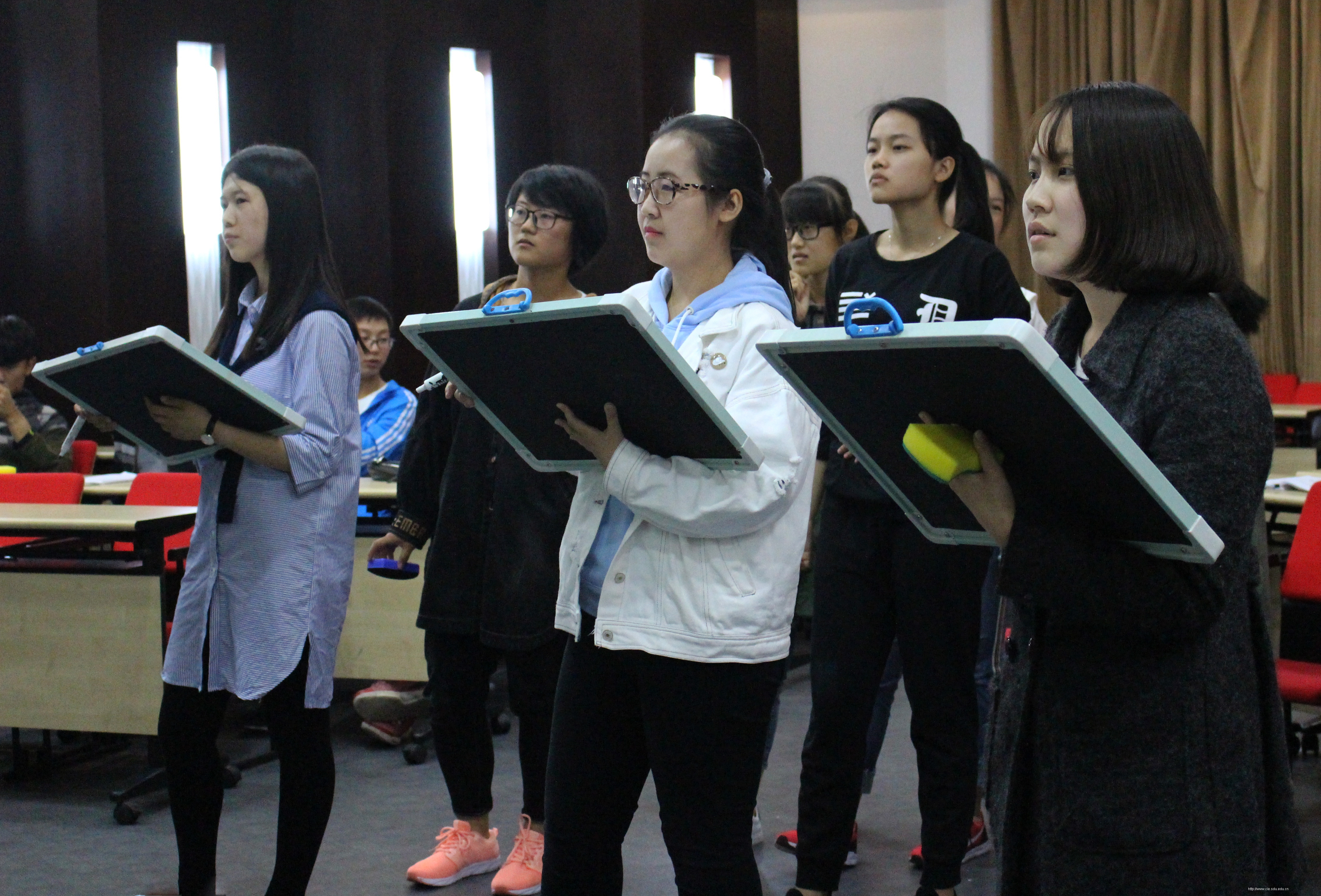 15:00左右,学习部成员到场并开始进行会场布置、仪器检查等赛前准备。随后,参赛选手也陆续来到参赛地点,进行参赛前最后一次紧张的复习。15:40,主持人宣布比赛正式开始,各小组队长依次介绍组名和成员,展示小组特色。