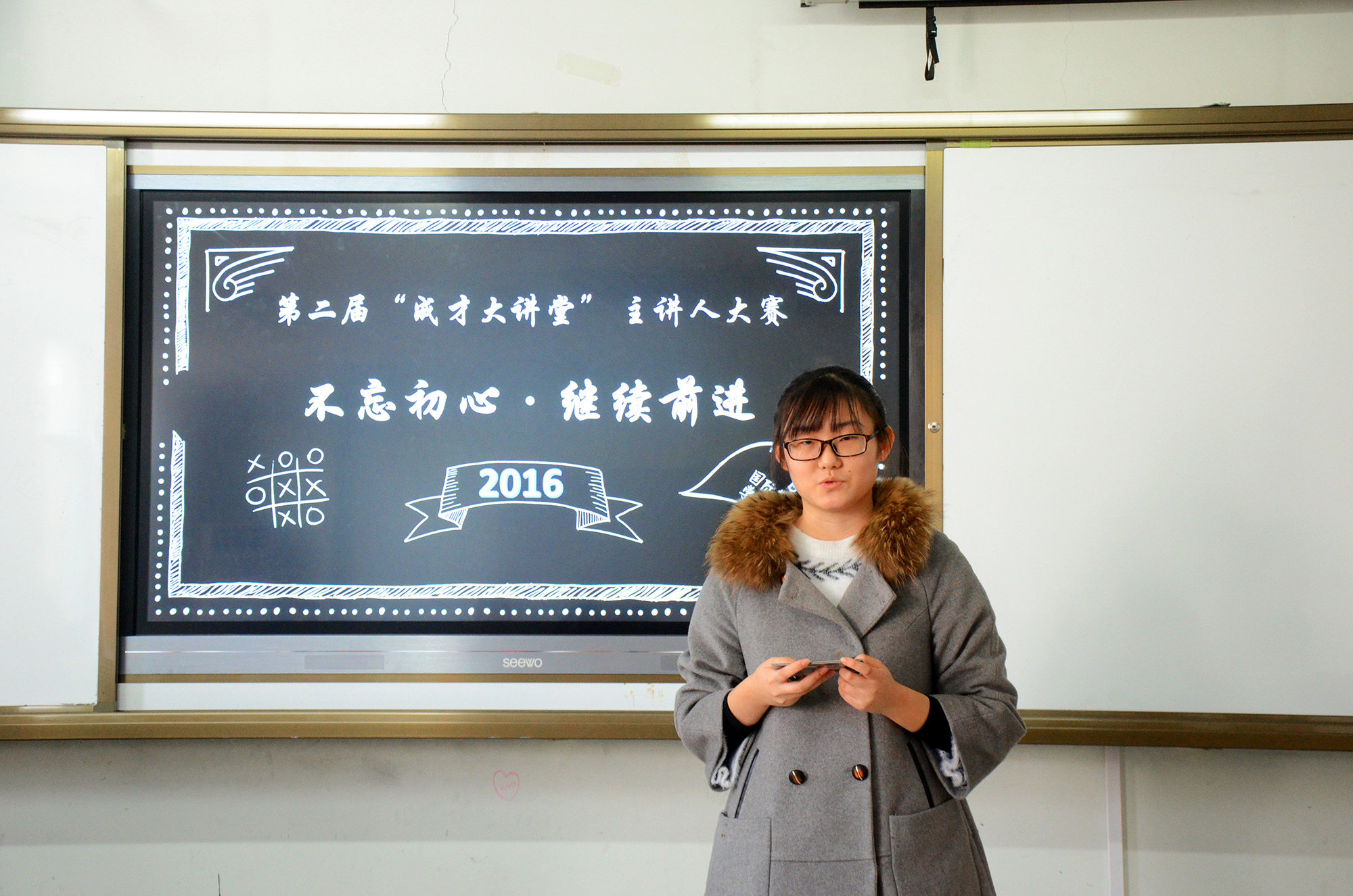 2016年12月15日下午,第二届“成才大讲堂”主讲人大赛在学院404教室拉开帷幕。大赛设有学生评委和教师评委,2015级带班老师、学生心理健康教育与咨询中心许晓梅、2014级班主任冯赫,2015级班主任张学广和辅导员马艳妮担任教师评委。