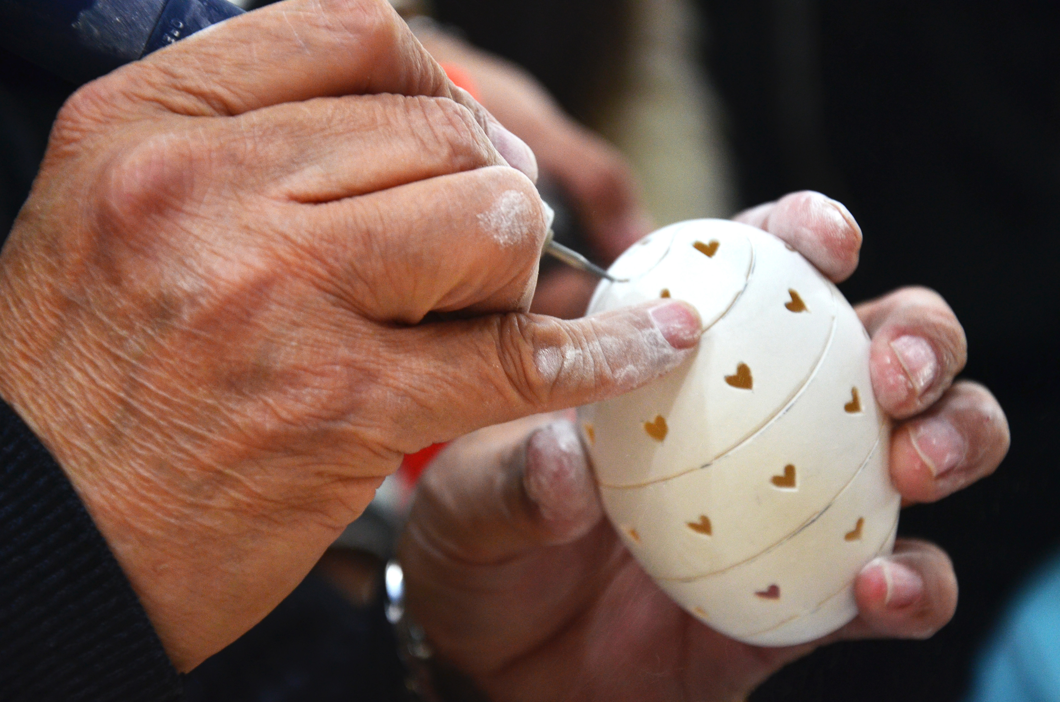 单老师还为我们带来了精彩的蛋雕现场展示,在短短几分钟的现场表演中,全场屏气凝神,无声的静默里每个人都以紧张而期待的目光注视着单老师每一个微小的动作。由于场地和周围环境的限制,最后制作出的蛋雕出现了一点小瑕疵,但这个简单而又极富美感的过程中,我们收获的最可贵的东西在于认真工作的态度。