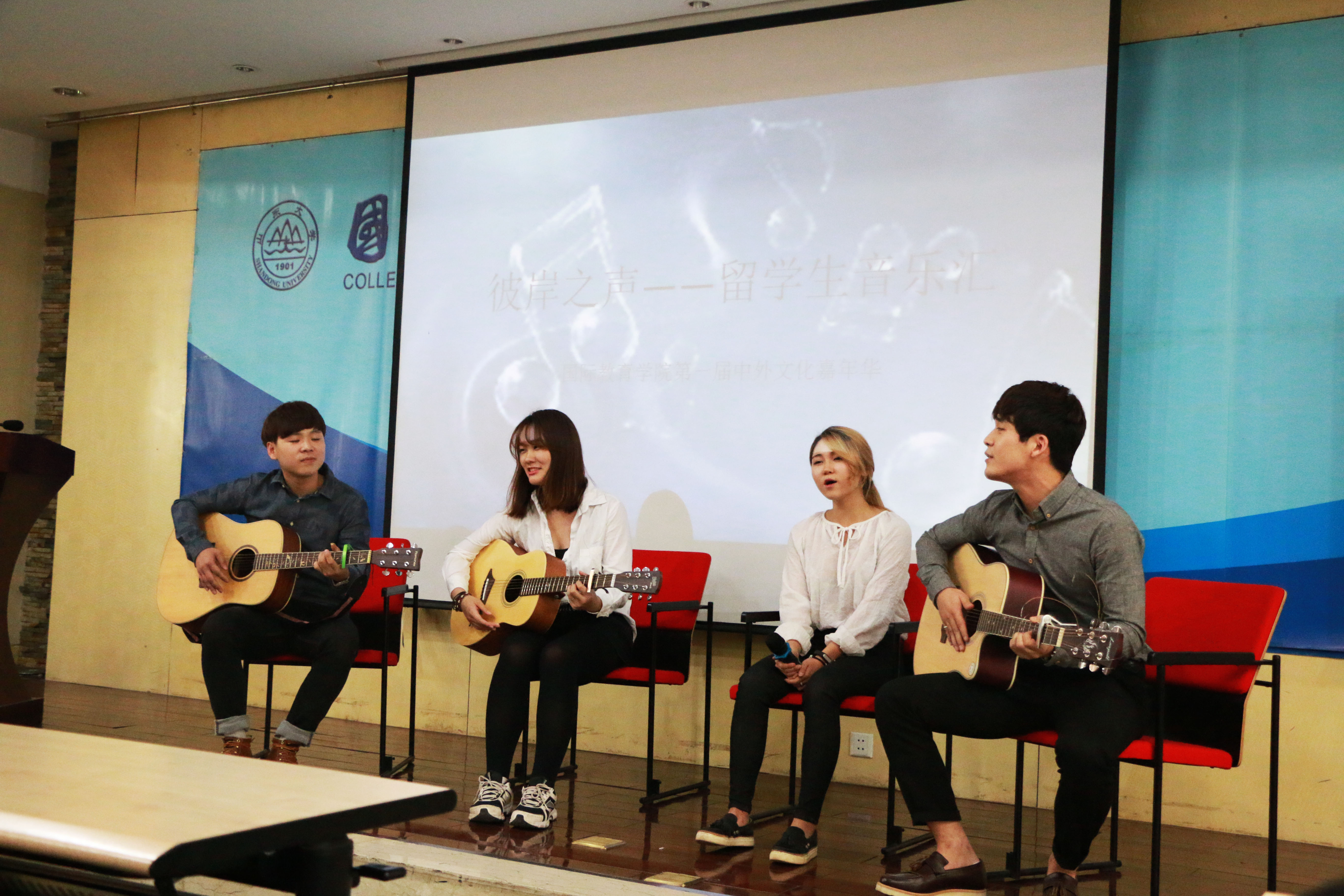 10月17日晚6点30分由beat365英国官网学生会主办的 “彼岸之声”音乐汇在beat365英国官网一楼报告厅举行。活动吸引了beat365英国官网众多中外学生的参与。