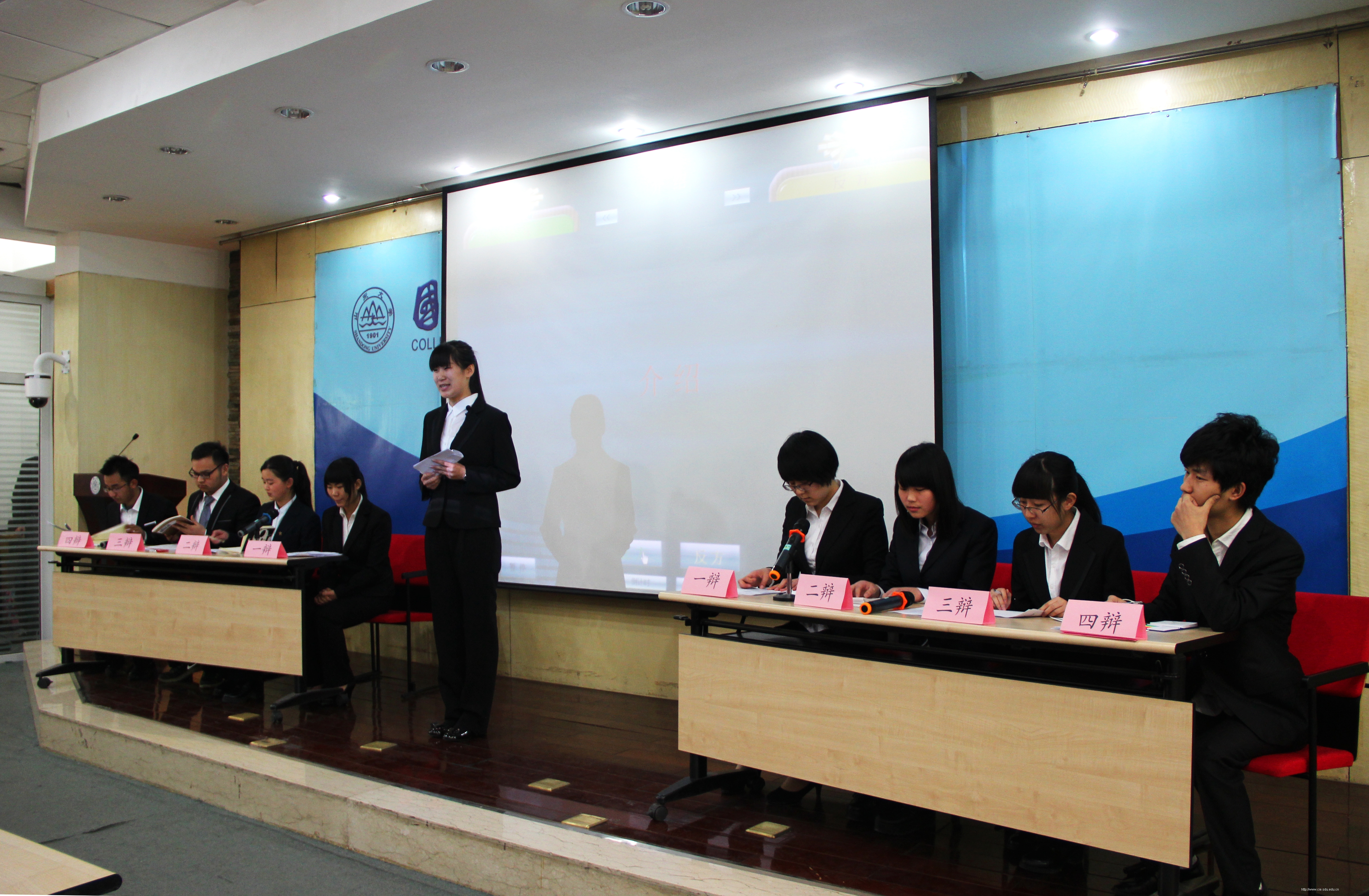 比赛分为上、下两个半场,共计六个环节。2014级本科生李俊萱担任本场辩论赛主席。