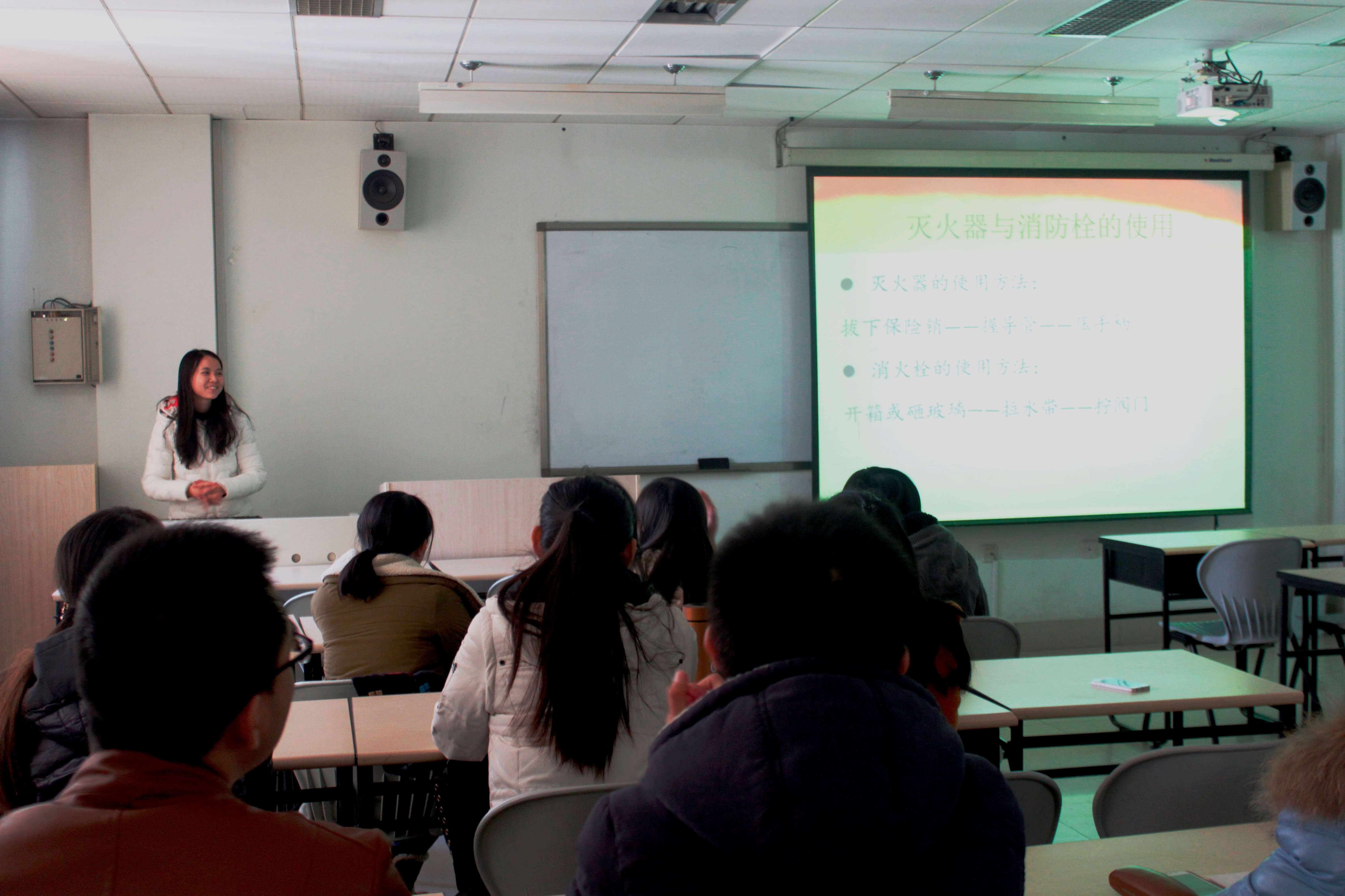 讲座上,学院辅导员马艳妮老师首先指出,每个人都需要安全的生活环境,有了安全的生活环境,我们才能更好地投入到日常的工作学习生活中去。随后,同学们观看了学校火灾警示片,了解了近年来高校发生火灾的主要原因,认识到在宿舍内违规使用热得快等电器带来的严重后果。这些触目惊心的火灾案例一方面给大家敲响了安全用电避免火灾的警钟,另一方面也教育同学们如果碰到火灾该如何正确自救、逃生,怎样以有效的方式去积极应对。